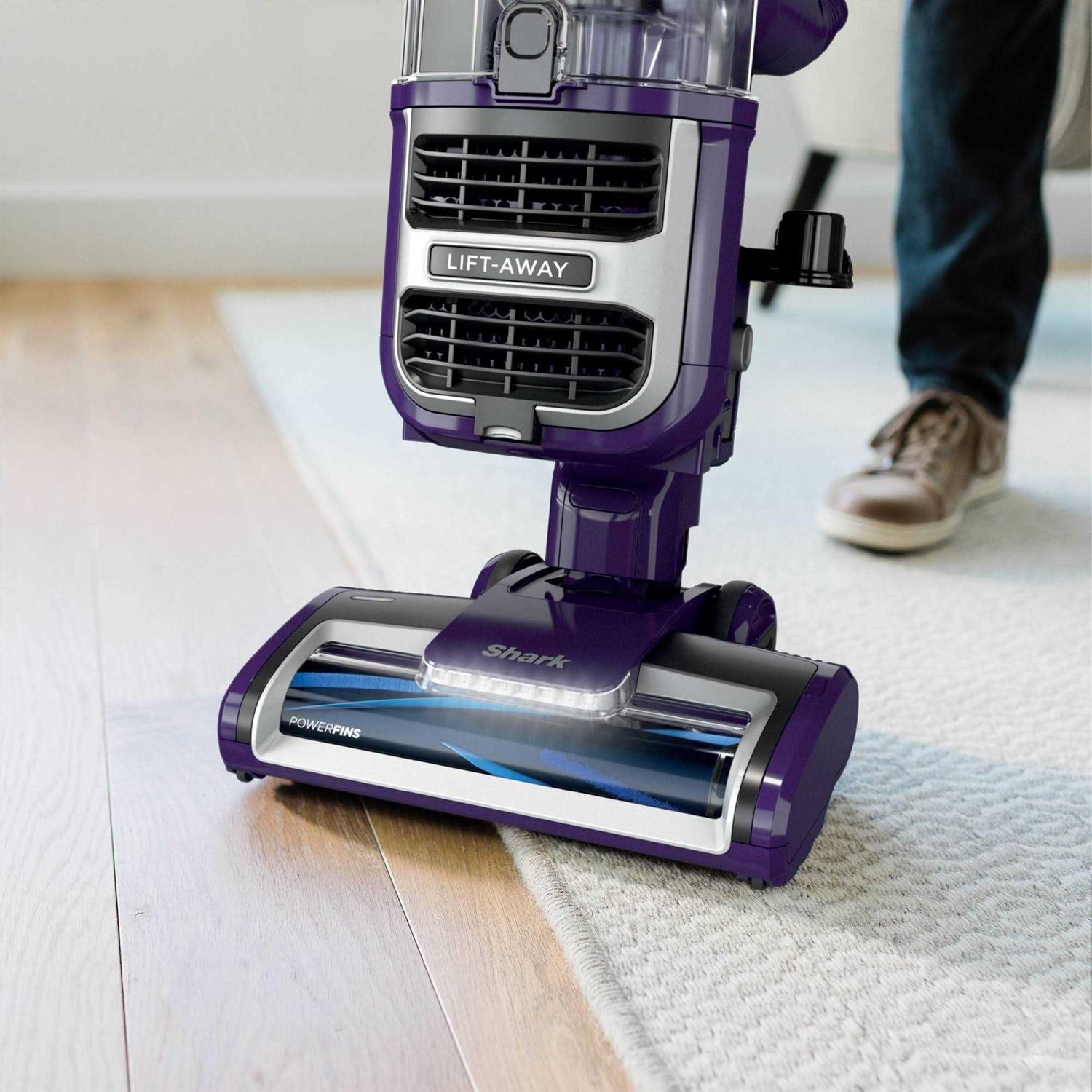 This Shark Lift-Away comes with a PowerFins brushroll, a no-bristle system to deep-clean and pick up more in every pass (vs. original DuoClean)—all with no hair wrap, thanks to the self-cleaning brushroll. It also includes Anti-Allergen Complete Seal Technology with a HEPA filter to trap over 99.9percent of dust and allergens inside the vacuum, keeping them out of the air you breathe. (Based on ASTM F1977 of particles .3 microns or larger.) LED headlights on the nozzle reveal hidden debris around your home, while Advanced Swivel Steering lets you easily maneuver in and out of tight spaces.