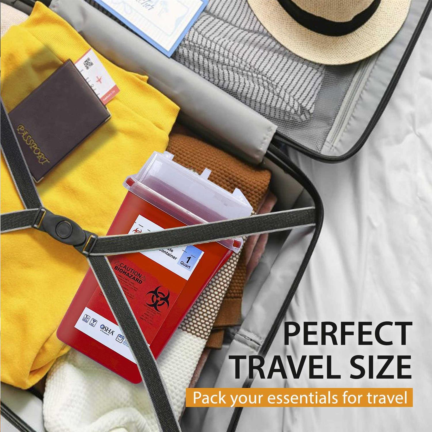 Dispose Of Used Sharps Safely – Use these needle disposal containers for the safe disposal of used sharps. Properly throw out syringes, lancets or finger sticks, auto-injectors, pen needles, and blades. A Safer Home – Keep used sharps away from kids and pets with this 1-quart small sharps container. It’s essential equipment for health care workers on the field and people doing self-injections at home. Suitable For Business Use – This compact and light travel size sharps container can be used by various businesses that use sharps. These include vet clinics, tattoo parlors, and med spas. 2-Way Secure Closure – A temporary closing mechanism lets you use the bin until it’s full. The bin also has a snap-lock feature that allows you permanently close the lid for final disposal. Superb Value For Money – The package includes 3 mini sharps container with lids, with each one able to hold up to 50 syringes. This saves you from having to buy sharp disposals constantly.