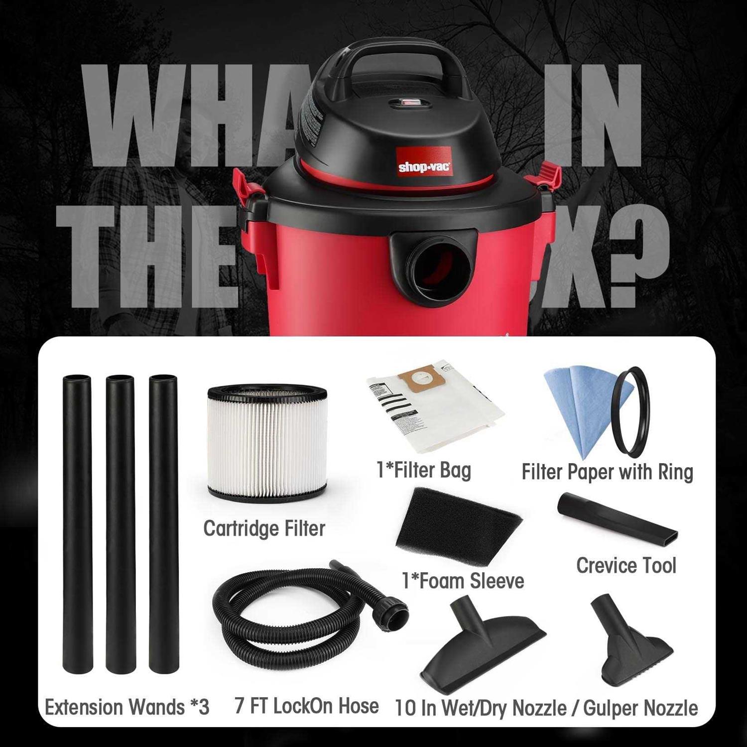 Color: Red/Black – Features: Powerful Performance: 3.0 Peak HP and 6-gallon tank ideal for projects in the garage, on the jobsite, home renovations, or floods – Built-In Blower Port: Rear blowing port on this wet/dry vac allows for quick cleaning of leaves and grass clippings in your garage and outdoors Top and side carry handle for easy transportation. – Included Accessories: 7‘ x 1-1/4″ Secure Fit Hose, (3) Extension Wands, (1) 10 In Wet/Dry Nozzle, (1) Gupler Nozzle,(1) Crevice Tool, (1) Standard Cartridge Filter, (1) Fliter Bag and (1) Foam Sleeve – UPC: 820909671114Package Dimensions: 333x574x6985