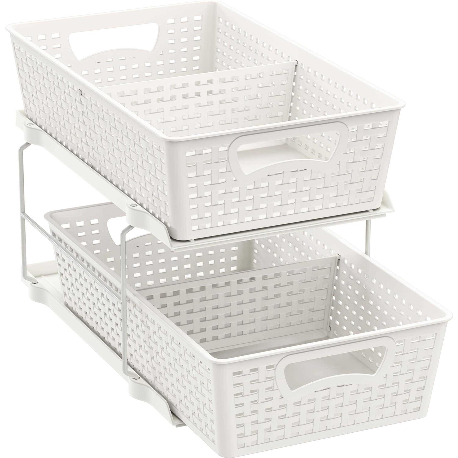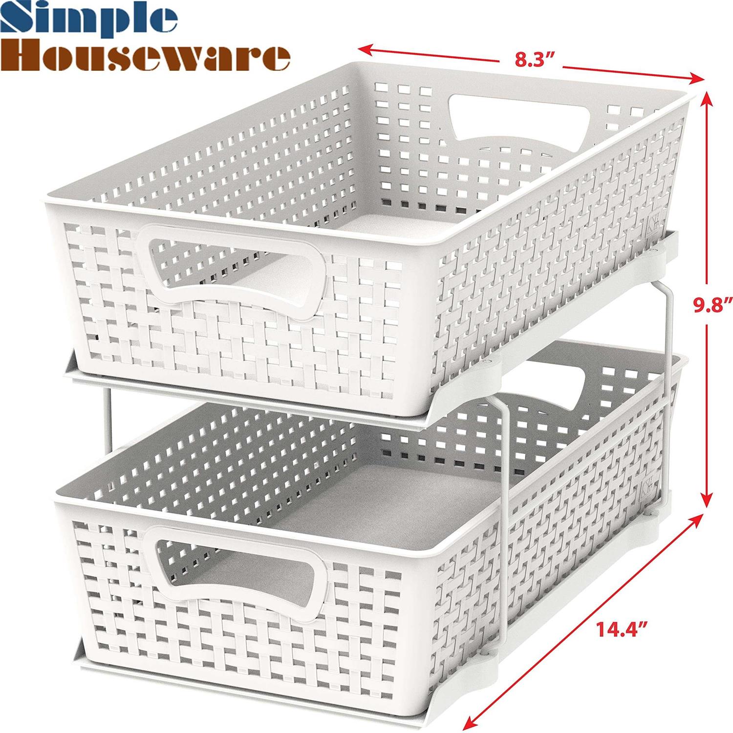 Simplehouseware 2 Tier Bathroom Organizer Tray Pull-Out Sliding Drawer/Under-Sink Storage, White