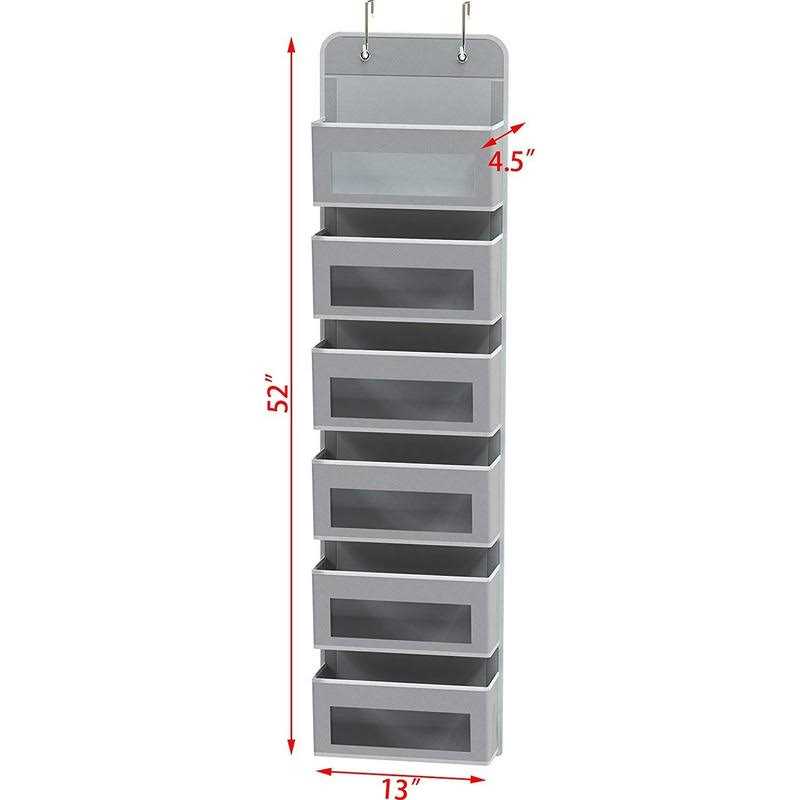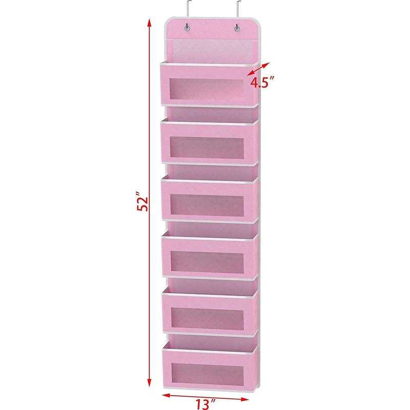 6 Large pockets hanging storage over the door. Large clear window see through what are stored inside. Hangs on standard door or closet rod, no hardware needed. Prefect for storing kids toys, baby diapers and accessories. Dimensions: 44.5″ H x 13″ W x 3.5″ D ( 113.0 cm H x 33.0 cm W x 8.9 cm D), Patents Pending.