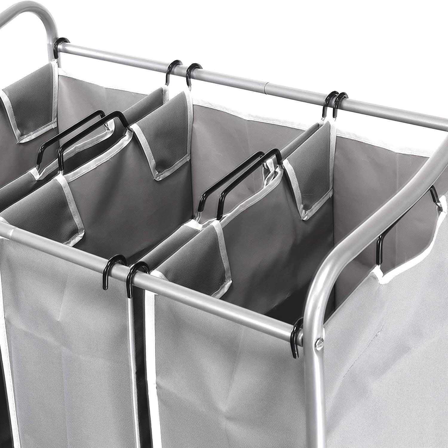 Sturdy Frame Durable Silver Finish Steel With An Extra Horizontal Behind Bar Which Counts Six Horizontal Bars In Total Making It A Solid Framedurable Bags Each Heavy Duty Grey Bag Holds 13 Gallons Of Clothes Easy To Cleanheavy Duty Casters Two Of The Casters Come With Brakes Takes On Heavy Loadsand Rolls Smoothlybag Dimension 23 H X 155 W X 85 Dframe Dimension 295 L X 175 W X 33 H Height Includes Casters Simplehouseware Heavyduty 3bag Laundry Sorter Cart Grey