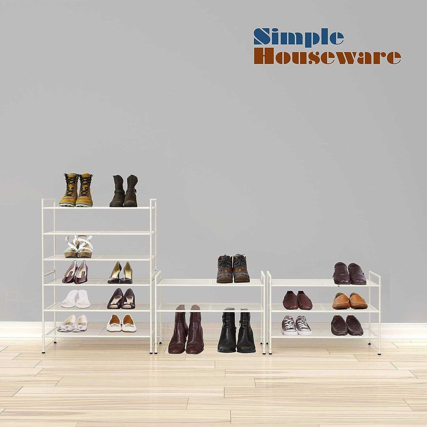 - Simple Houseware 3-Tier Stakable Mesh Shoe Racks with Shelves for Storage Organizer, Black.