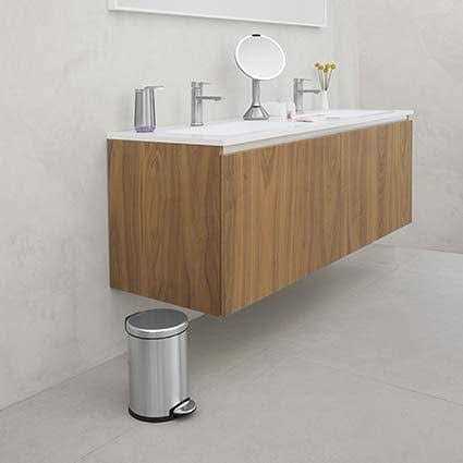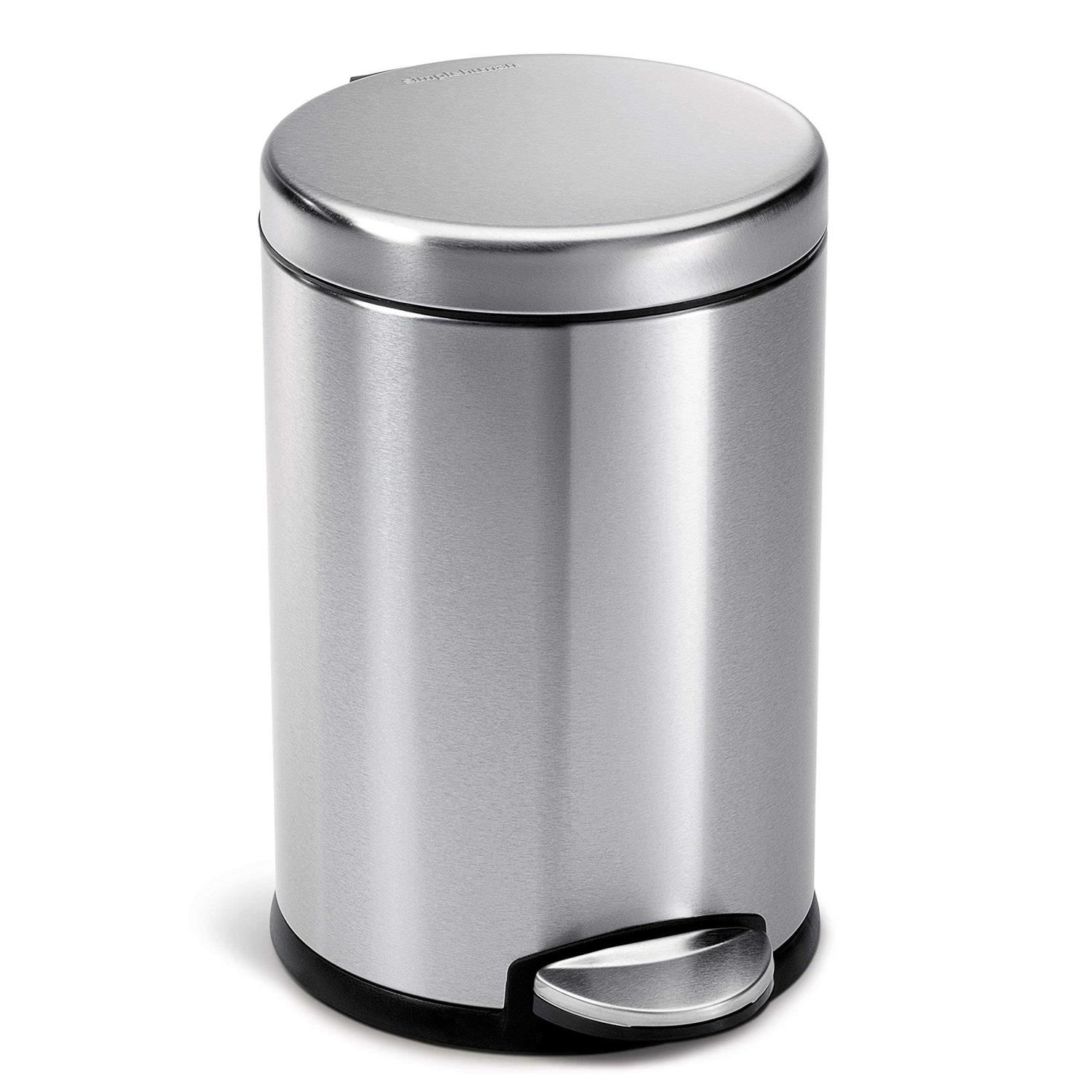 The simplehuman 4.5 liter / 1.2 gallon compact classic round step trash can is perfect for smaller spaces like a bathroom or an office. The strong steel pedal is built to last, and lid shox technology ensures a smooth, silent close every time. A removable inner bucket makes for easy trash disposal. The simplehuman code A liner fits this can perfectly no bunching or slipping for a cleaner trash experience.