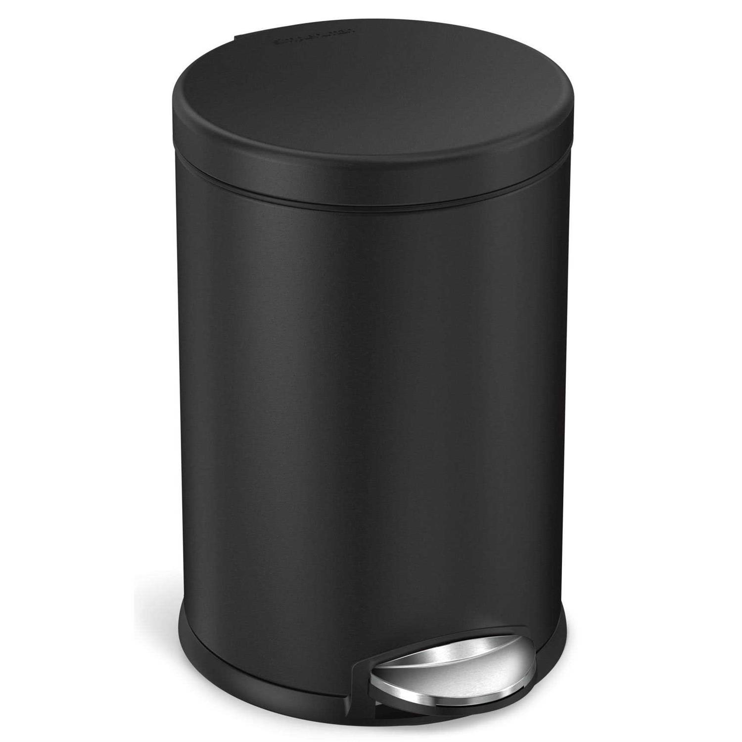 simplehuman 4.5 Liter / 1.2 Gallon Round Bathroom Step Trash Can, Matte Black