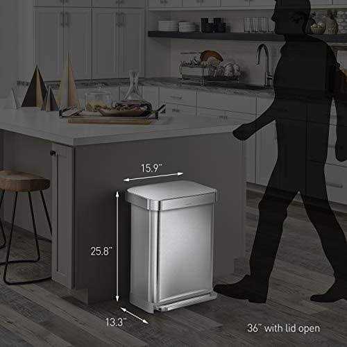 simplehuman 45 Liter Rectangular Hands-Free Kitchen Step Trash Can with Soft-Close Lid