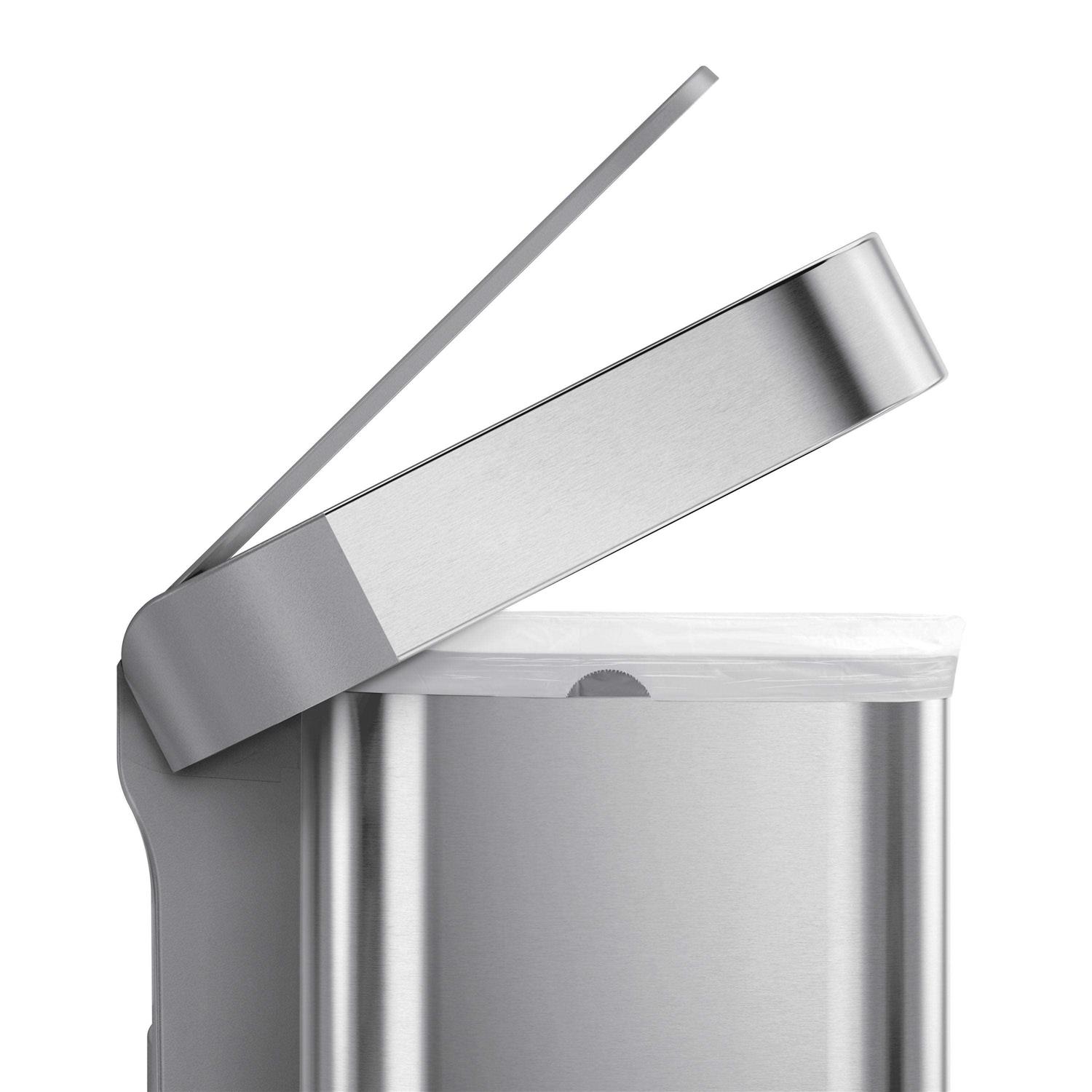 The simplehuman 45 liter brushed stainless steel rectangular step trash can features an innovative ‘liner pocket’ that stores and dispenses liners from inside the garbage can for a faster liner change. The stainless steel liner rim grips the liner and keeps it hidden. And with no inner bucket, there’s more space for trash. Strong plastic pedal is designed to last, and patented lid shox technology ensures a smooth, silent close of the dent-proof plastic lid every time. Code M liner refill packs store perfectly in this can’s liner pocket.