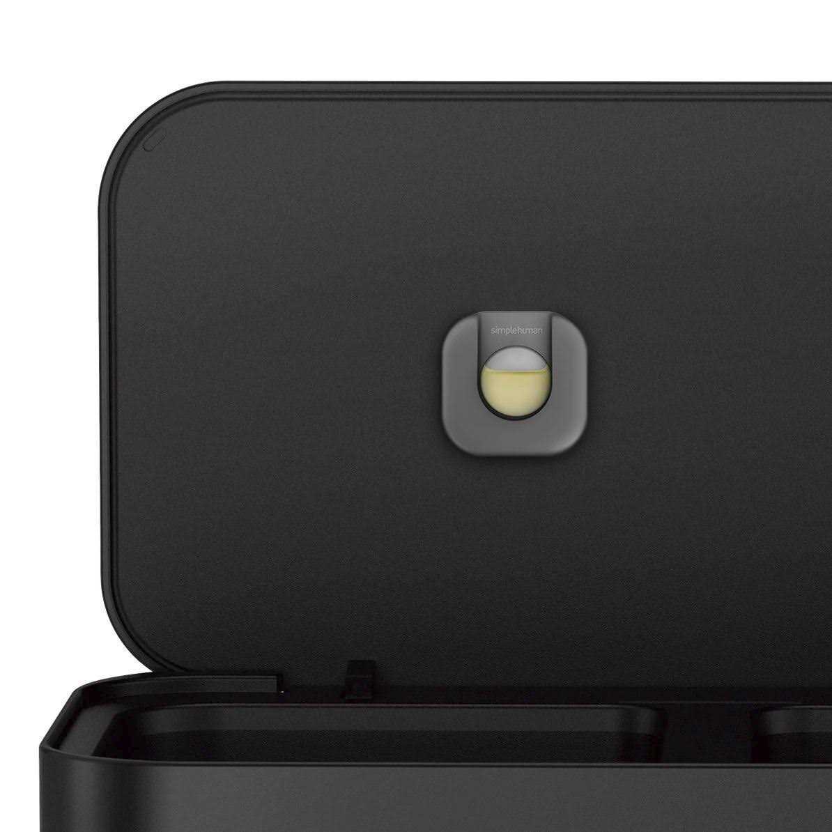 Our new stainless steel rectangular pedal bin features an innovative ‘liner pocket’ that stores and dispenses liners from inside the bin for a faster liner change. The stainless steel liner rim grips the liner and keeps it hidden. And with no inner bucket, there’s more space for waste. Strong wide steel pedal is designed to last, and our patented lid shox technology ensures a smooth, silent close every time. The can’s stainless steel surface is protected by an invisible silver-ion coating that resists fingerprints and germs (brushed model only). Code M liner refill packs store perfectly in this bin’s liner pocket.