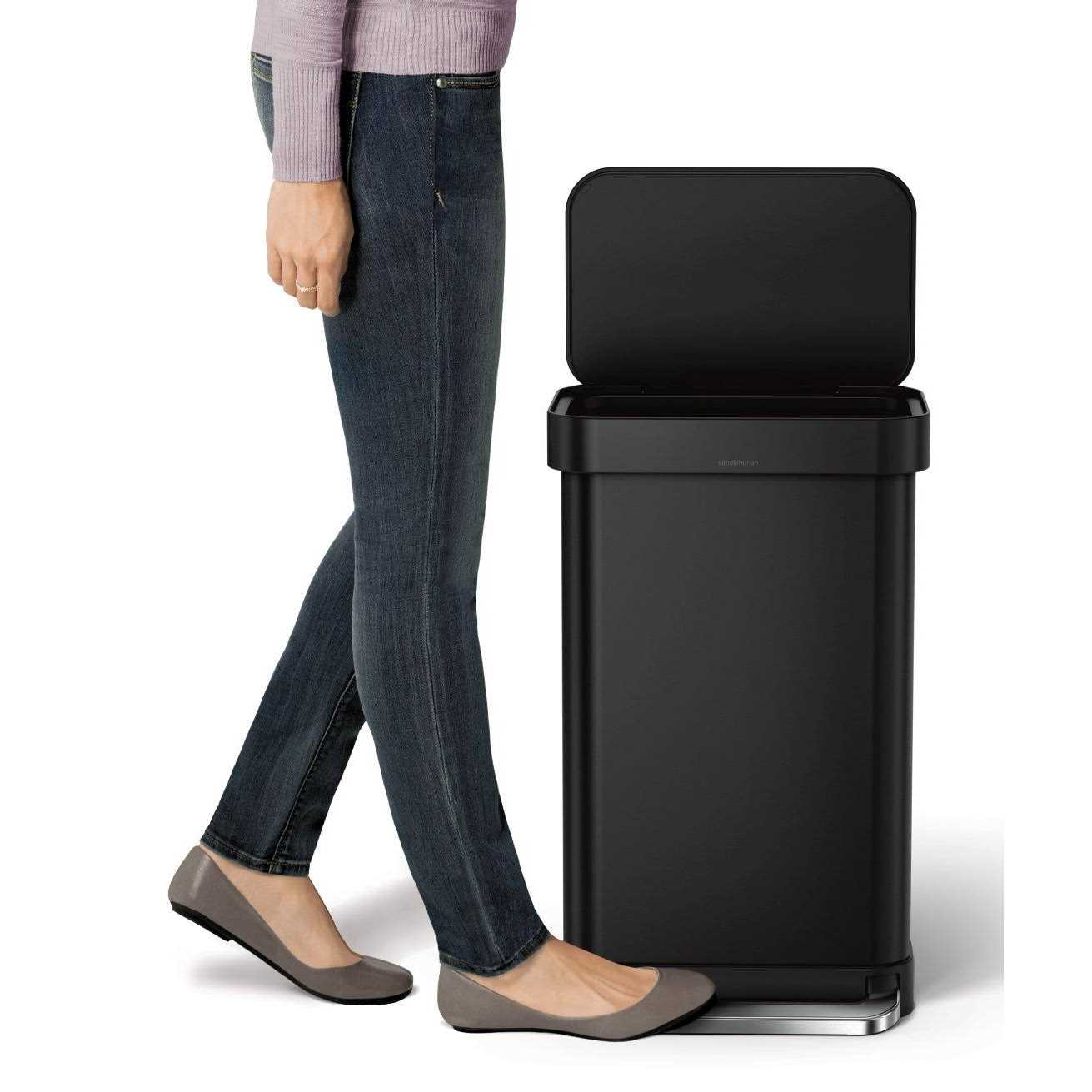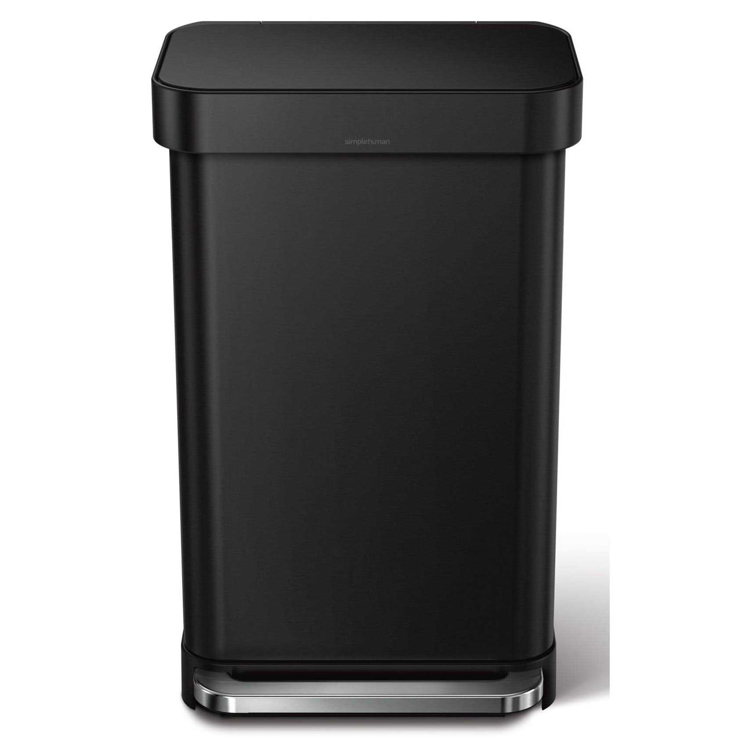 simplehuman Matte Black Stainless Steel 45-Liter Rectangular Step Trash Can