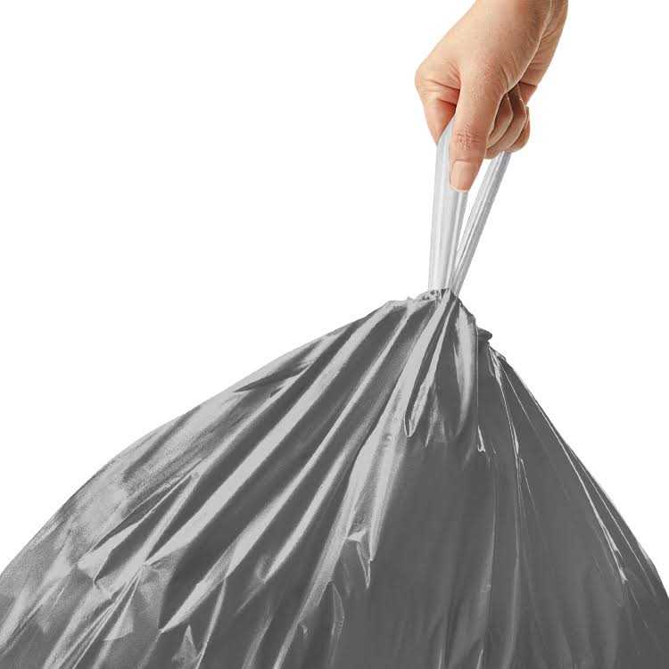 - extra-durable plastic and thick double seams let you pack your trash to the rim without worry of tears or leaks Convenient drawstring handles