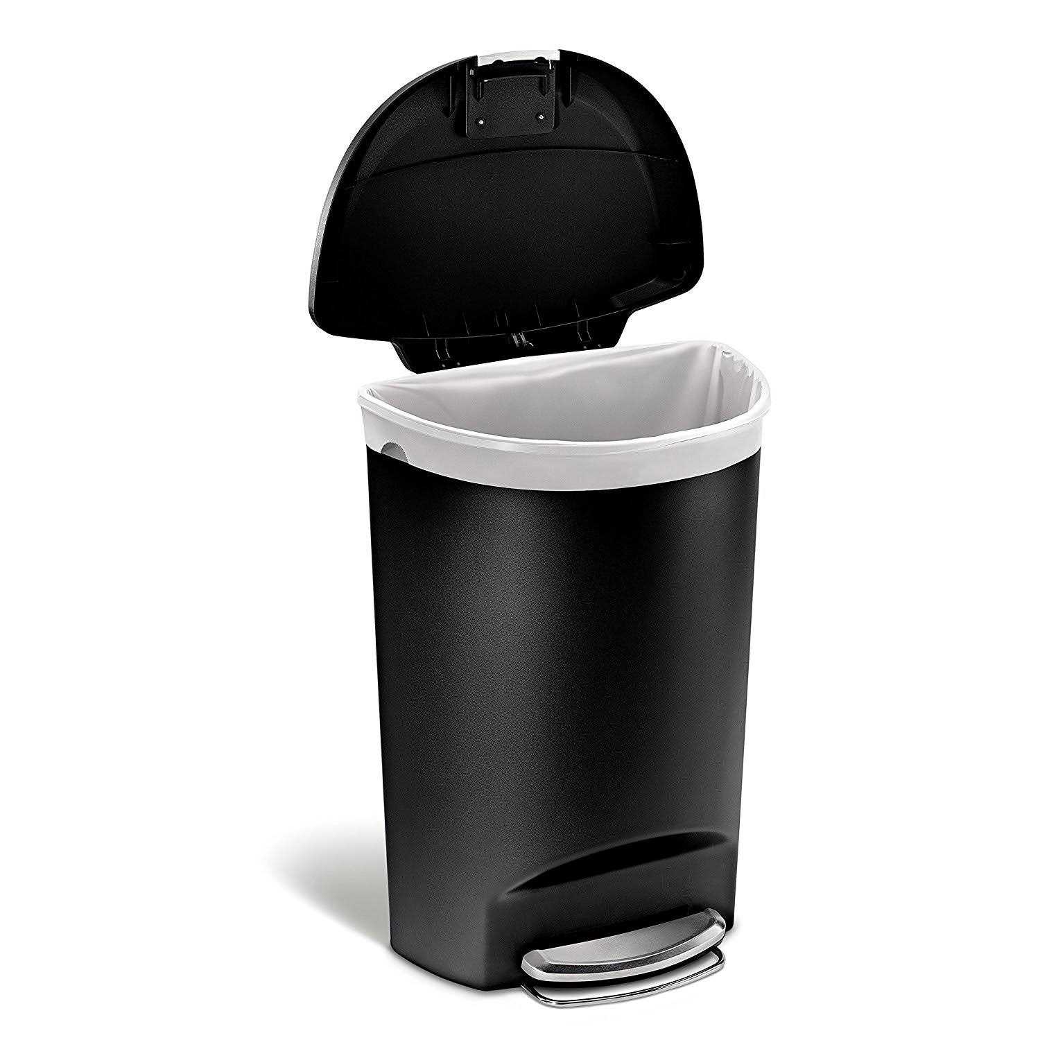 simplehuman Semi-Round Step Trash Can Black Plastic 50 L 13 Gal
