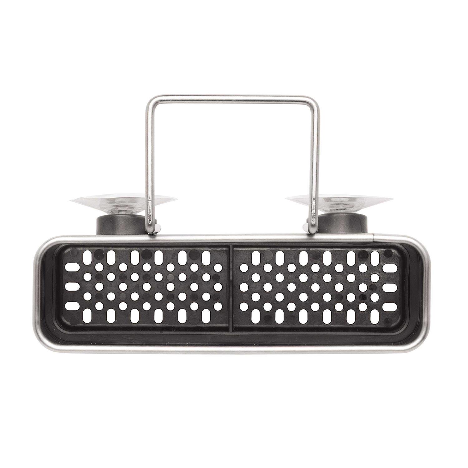 - Caddy features an elevated compartment and numerous venting holes to maximize airflow for faster drying sponges and prevention of bacteria growth.