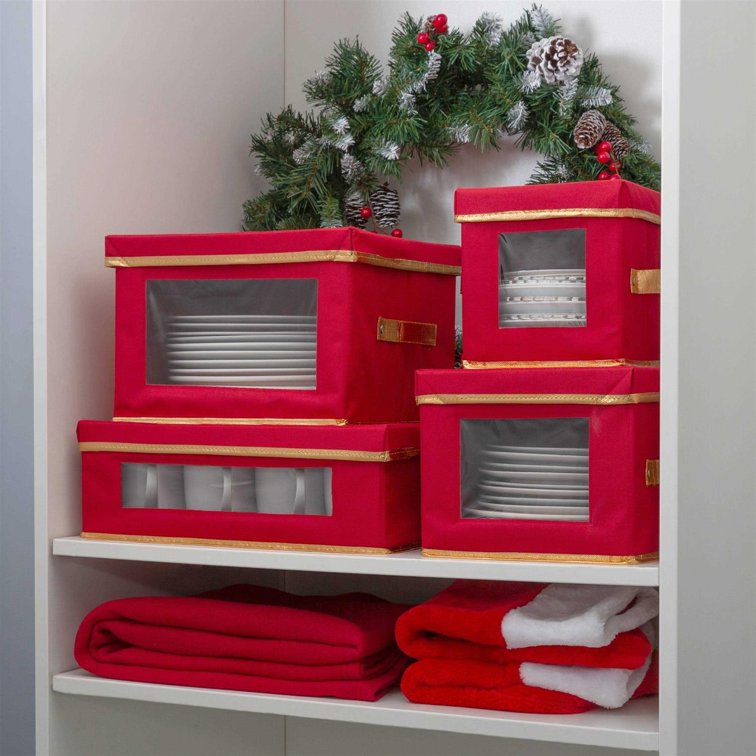 Simplify 12 Count China Mug & Cup Storage Box – Red