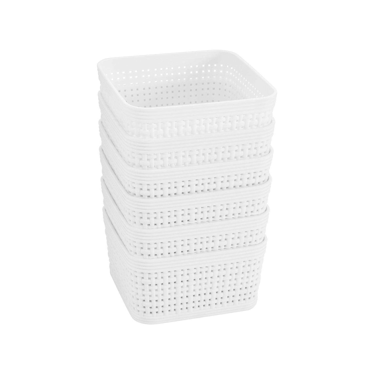 The pack includes 3 different sizes 2 round baskets, 2 square baskets and 2 rectangular baskets for your different needs. Can be placed in a drawer, on a dresser, cabinet, vanity office and more. Keeps items in place and prevents messes around your home. Can use just about anywhere in your home including the home, bathroom, office, kitchen, devices and toys!