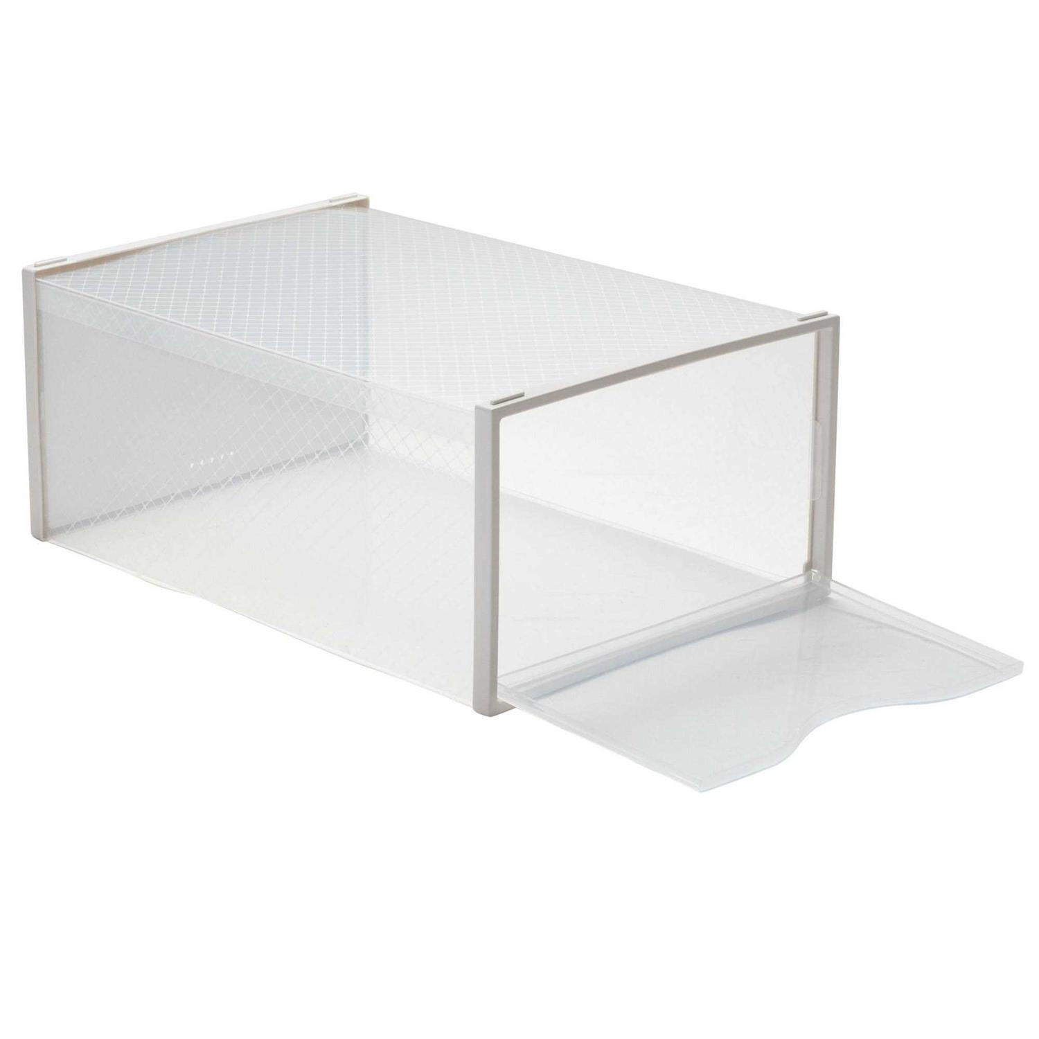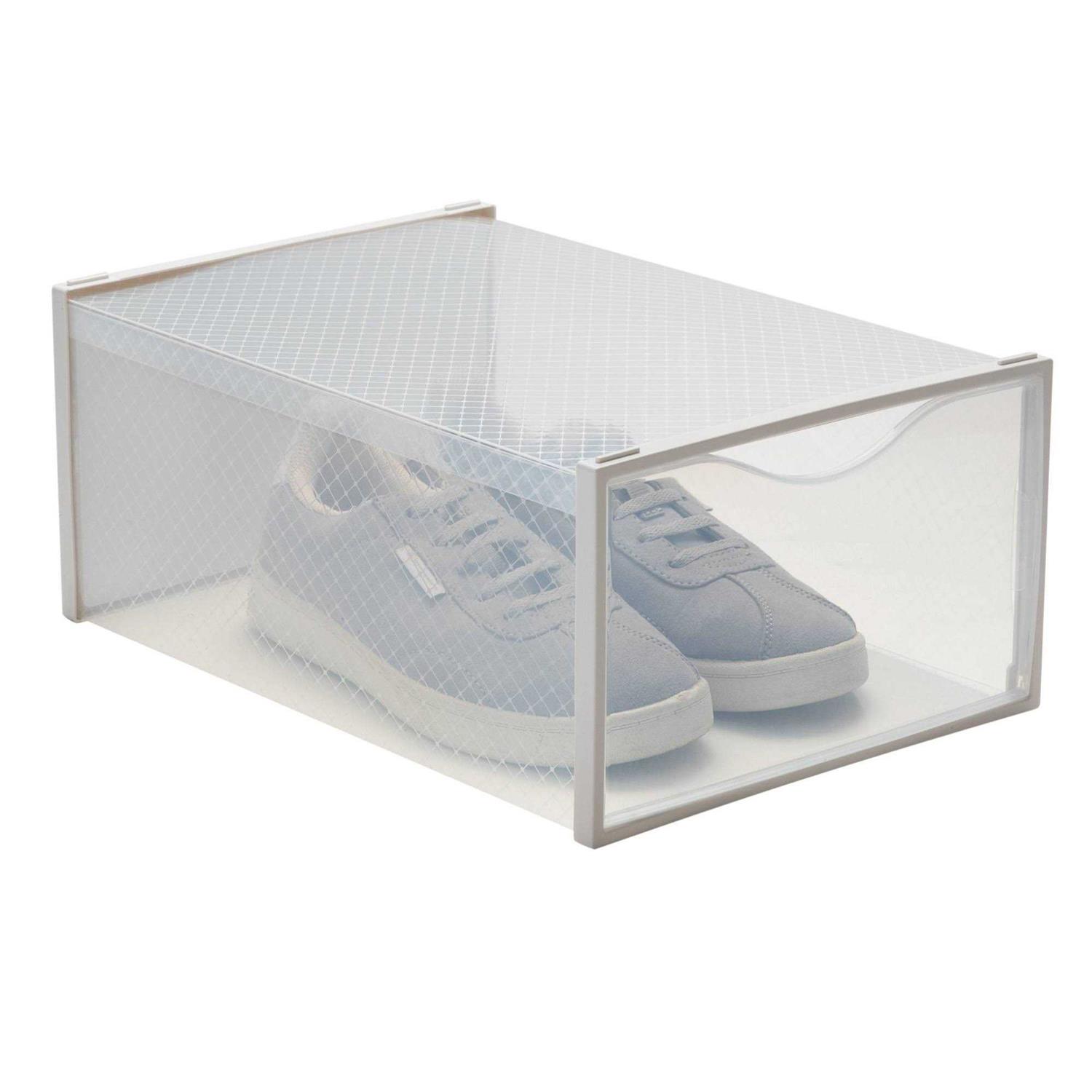 With these shoe boxes, your footwear collection will stay neat, tidy, and easily accessible. Each box is carefully crafted to accommodate shoes up to Size 11, ensuring that even your largest pairs are perfectly accommodated. The stackable frame allows you to create your unique storage solution, making the most out of any available space. Whether you have a small closet or spacious walk-in, these shoe boxes will adapt seamlessly to your needs. Say goodbye to rummaging through piles of shoes! The drop-front design provides effortless access to your footwear, allowing you to pick out the perfect pair in a snap. No more lifting and shuffling boxes around; the convenience of our shoe boxes will simplify your daily routine. With a clear easy-view construction, you can quickly identify which shoes are stored in each box without having to open them individually. This transparency not only saves time but also adds an elegant touch to your shoe storage area. These shoe boxes are thoughtfully designed to be large enough to fit various types of shoes, from sneakers and heels to sandals. No matter your shoe collection’s diversity, our stackable boxes have got you covered. Experience the joy of an organized shoe collection while showcasing your shoes in style.