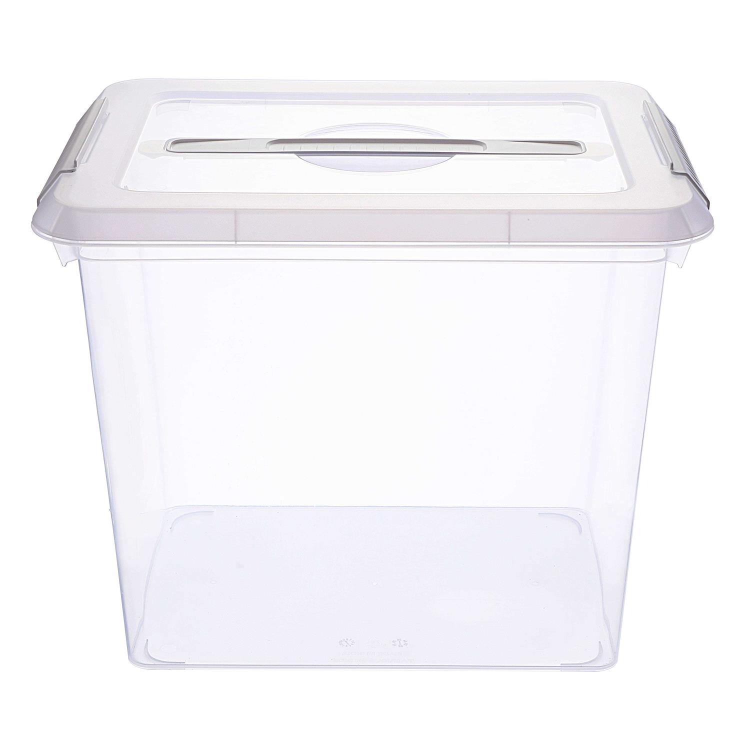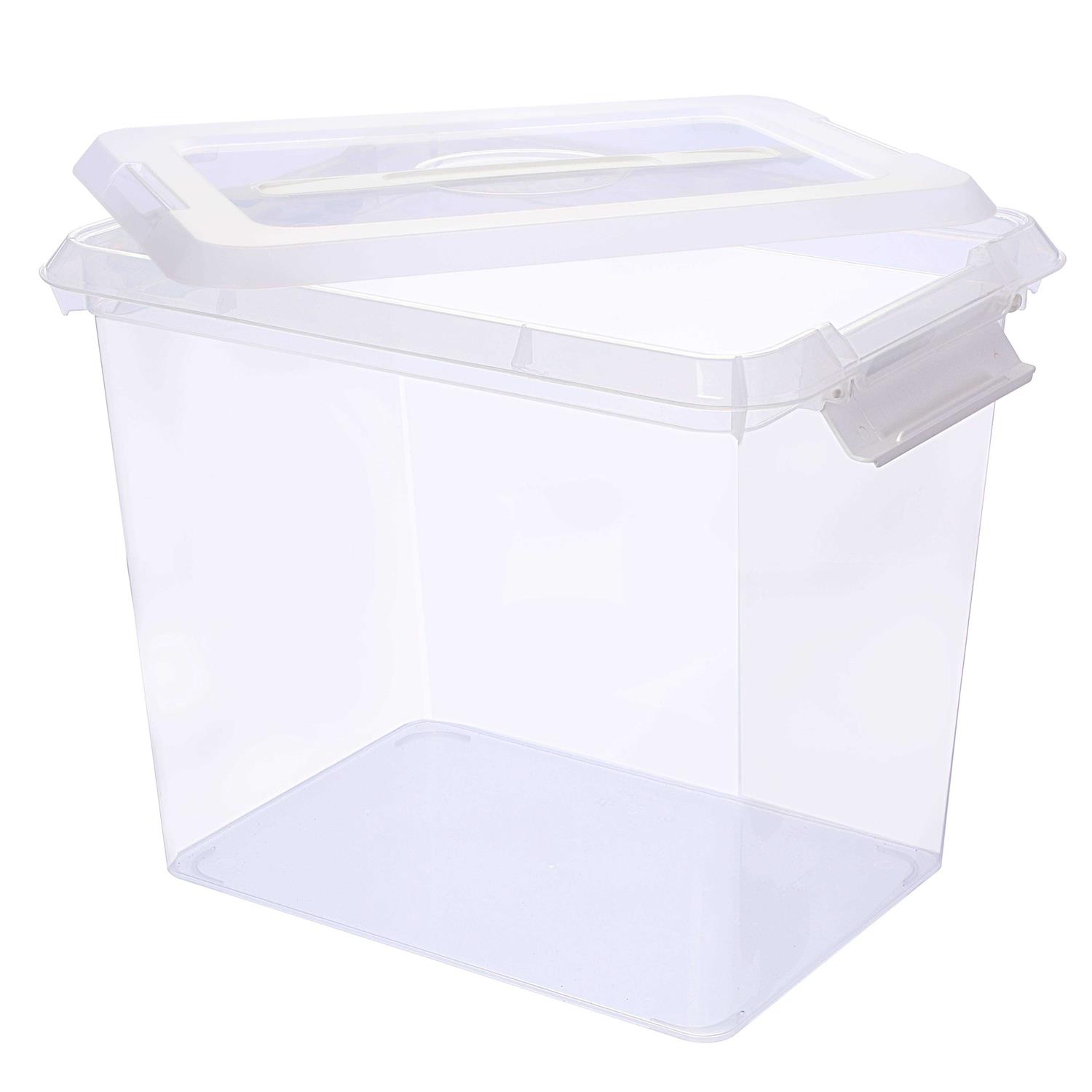 Buy the 26qt. This clear storage bin is great for keeping your favorite craft supplies organized. This clear storage bin is great for keeping your favorite craft supplies organized. You can also use it to store household items, knickknacks, files, linens and more. Details: Clear with white lid 26 qt. (24.6 L) 16.3″ x 12″ x 13.3″ (41.4cm x 30.4cm x 33.7cm) Plastic | 26qt.