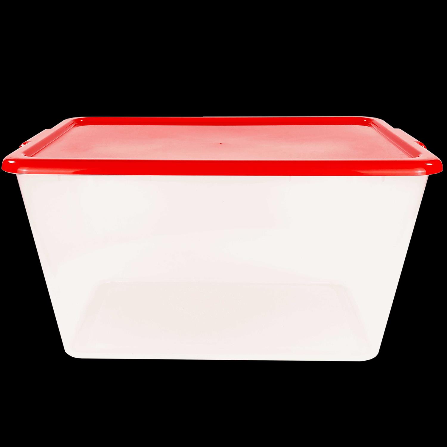 Simplykleen 14.5-Gallon Reusable Stacking Plastic Storage Containers with Lids, Red/Clear (Pack of 4), Size: Large