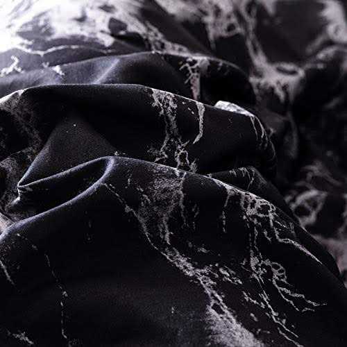 【KING SIZE】Marble black comforter set measuring 104 inches x 90 inches with 2 pillowcases measuring 20 inches x 36 inches.