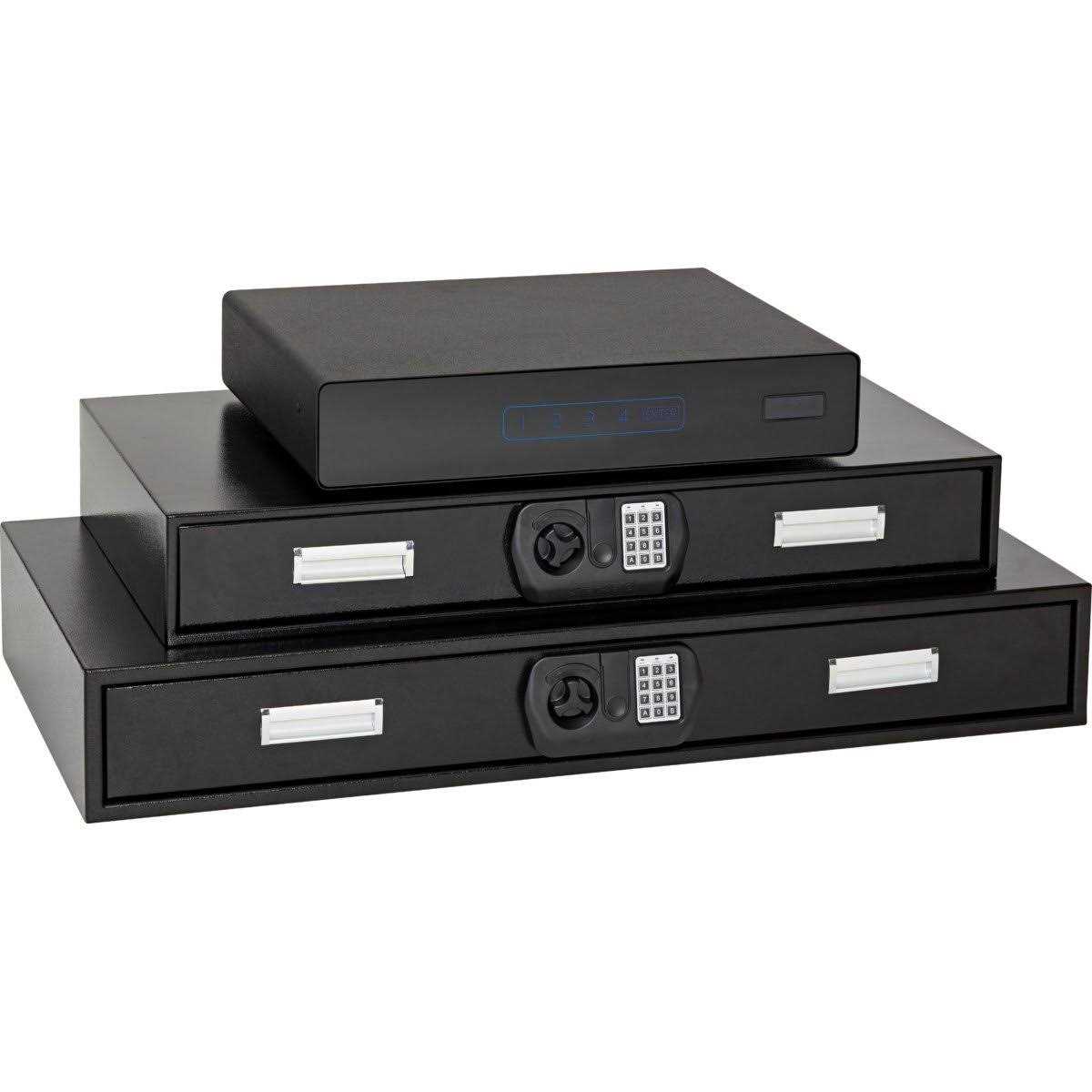 - out drawer accommodates firearms, jewelry, documents, and more.