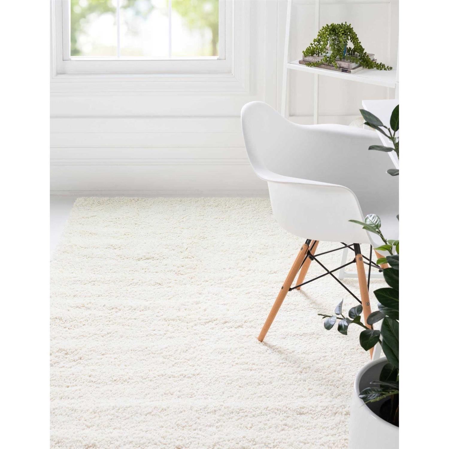 Soft Solid Shag 7×10 White Area Rug