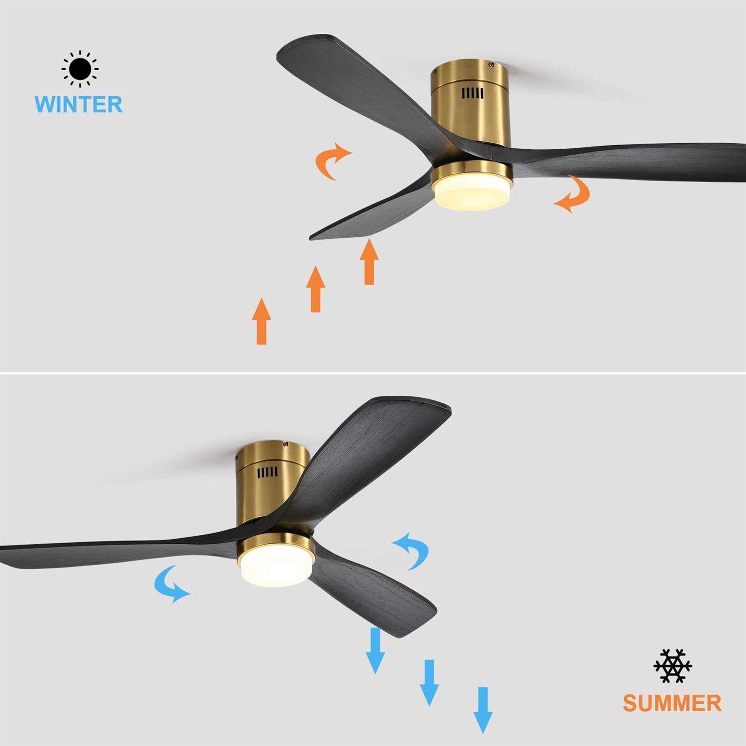 The Sofucor 52 inch indoor ceiling fan in polished brass will add much character to your space. It is a beautiful and substantial fixture and the right combination of modern rustic! This 52 inch low profile is made from metal material and has 3 solid wood blades. This wood ceiling fan can provide great air movement. With a 35W DC reversible motor, the 3-blade ceiling fan has a super quiet performance while saving energy both in the summers and winters. 3000K/4000K/6000K 18W LED integrated light keeps your space well-lit and at the perfect temperature. Perfect for medium to large-sized rooms with a low ceiling such as bedrooms, master rooms, living rooms, dining rooms, kitchens, Kid rooms, and much more! It has passed the ETL test. Package Include: 1 x Ceiling Fan with Light 1 x Remote Control 1 x User Manual