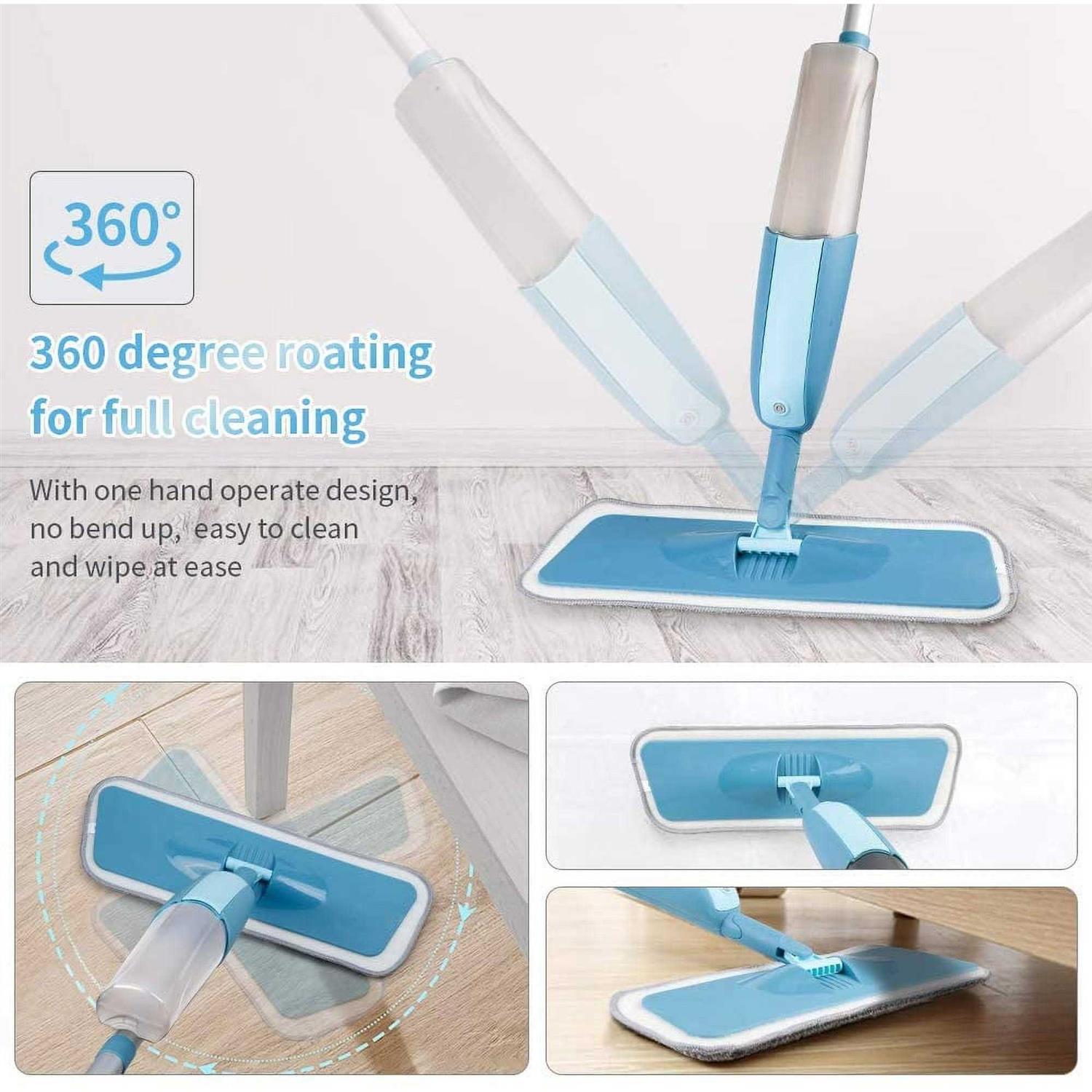 MEXERRIS Microfiber Spray Mop for Floor Cleaning – Wet and Dry, 360 Degree Spin Microfiber Dust Kitchen Mop with 410ml Water