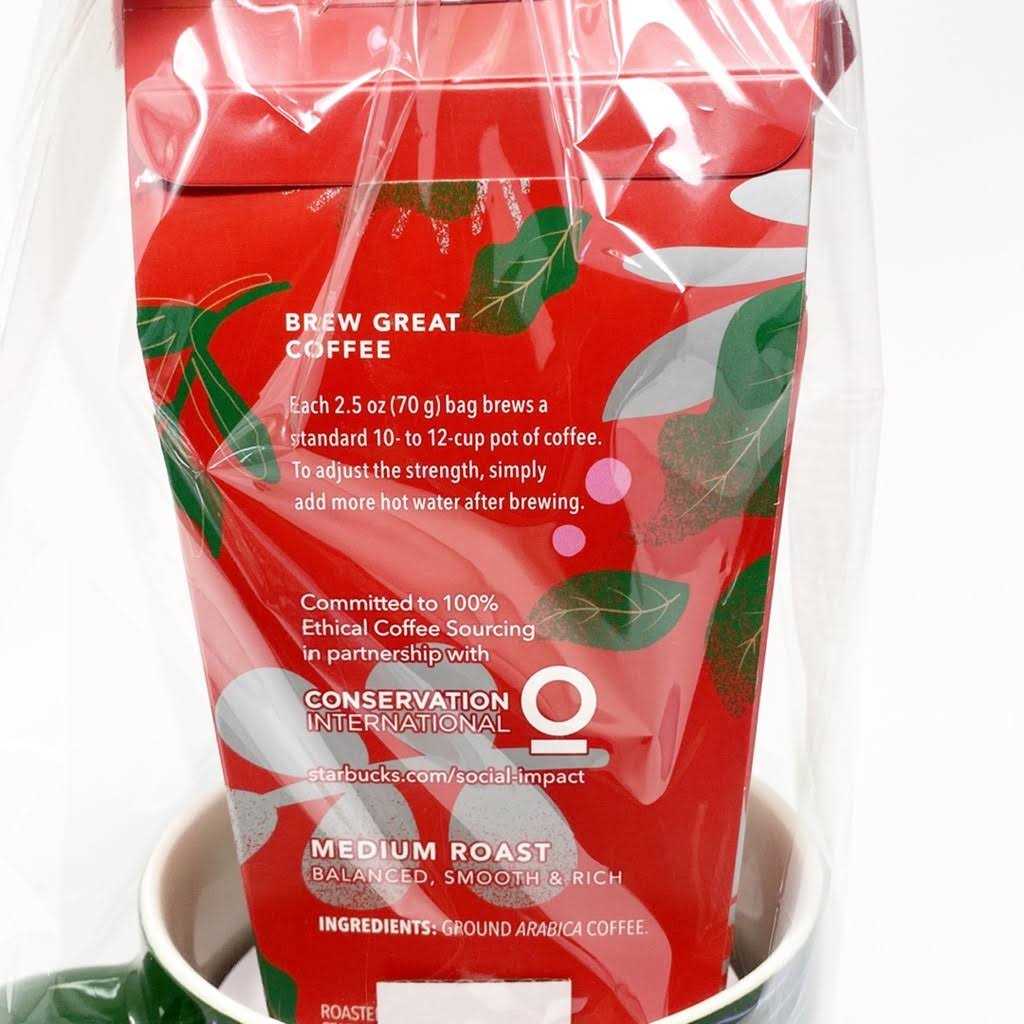 Cheers! Enjoy this Holiday season with a beautiful classic Starbucks Green mug with Coffee. This Gift includes a 15oz Starbucks mug and Holiday Blend Coffee. This coffee was created for celebrations and gatherings. Layered, balanced and sweet with herbal and maple notes. Enjoy it anytime you want to take in the season.