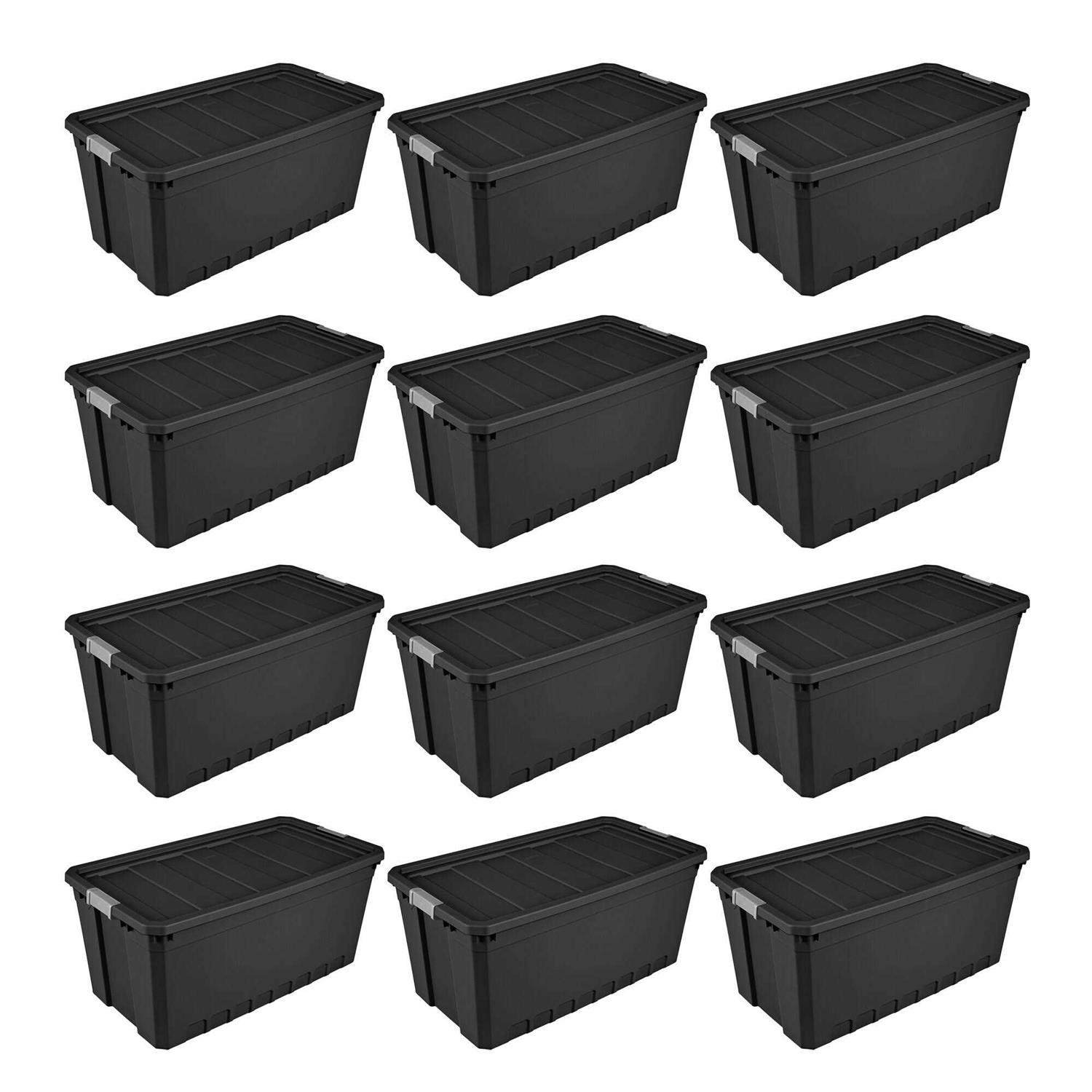 - Find the ideal storage space for organizing your items at home with this Sterilite Rugged Industrial Stackable Storage Tote with Lid in Black