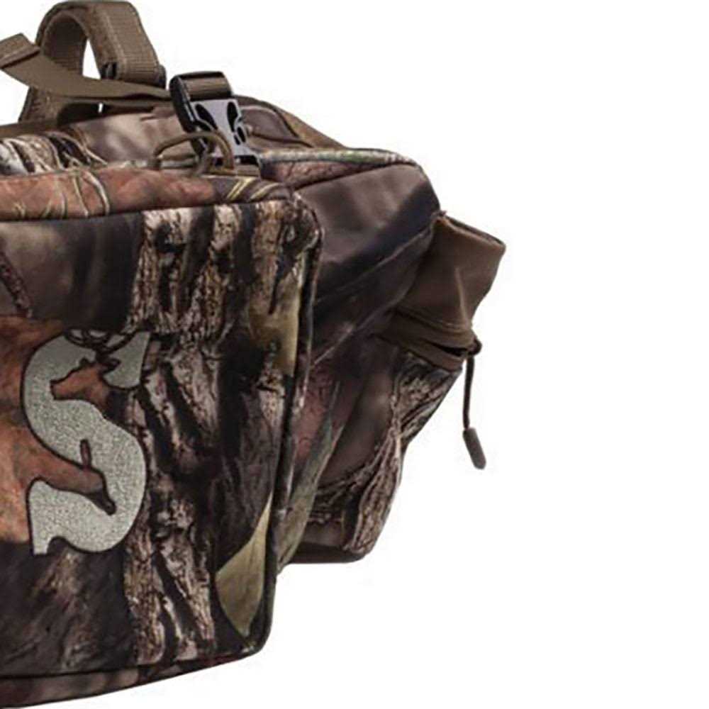 Maybe the only drawback to single seater tree stands is that they don’t have a lot of space to store gear. Thanks to the new Summit Deluxe Front Storage Bag, you’ll never have to leave gear in the truck again. This bag features a huge 13 x 7 x 4 inches of capacity and features new and improved outside and inside zippered pockets for silent operation. External storage pouches with draw strings and zippers let you hold even more gear. Designed to easily attach to any Summit model tree stand with a front bar or to other commercially available tree stands, ladders, and tripods. More of the gear you need in the field within arms reach, thanks to the Summit Deluxe Front Storage Bag.
