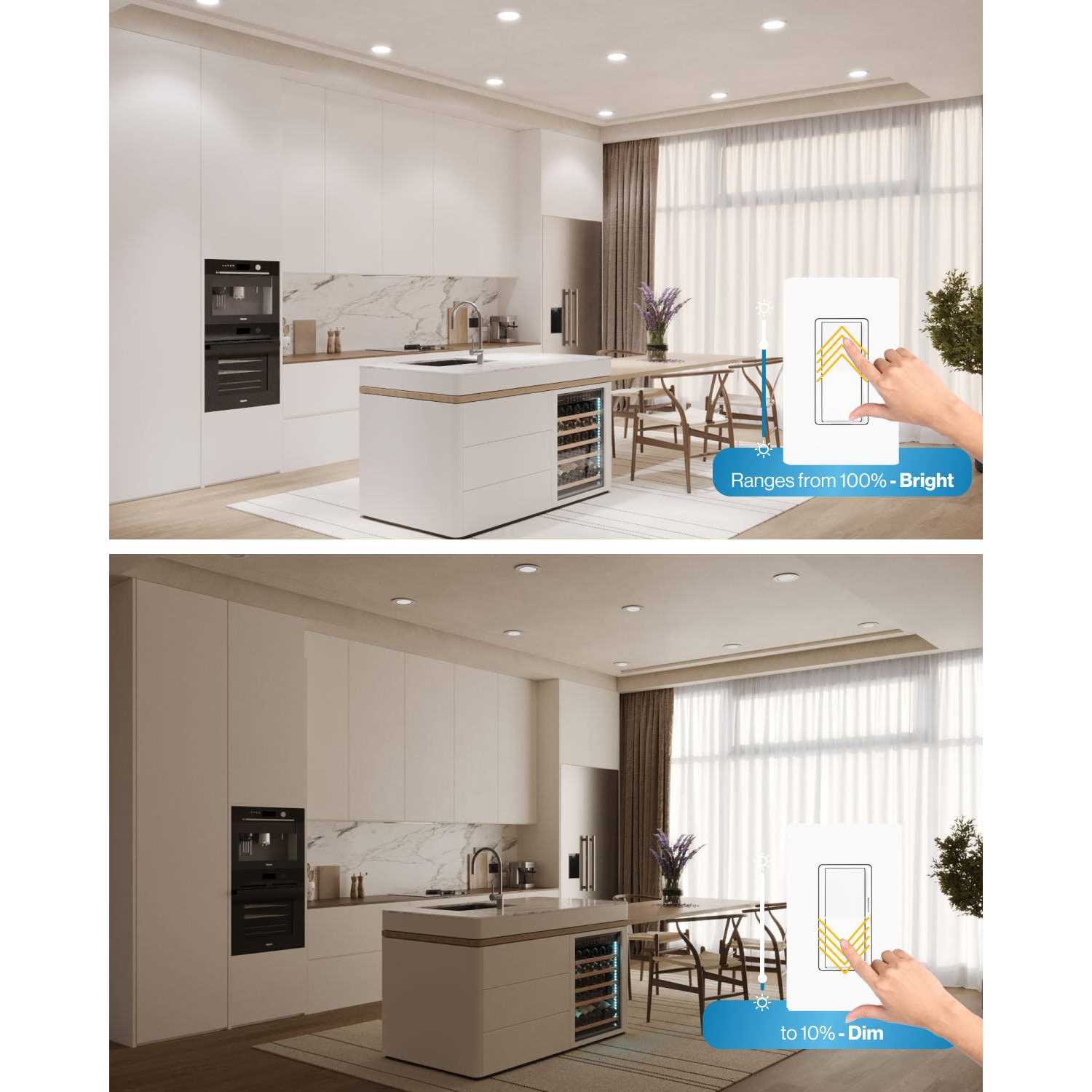 Top Rated 6 Inch Slim LED Downlight with Junction Box and Smooth Trim SELECTABLE CCT – Adjustable color temperatures (2700K, 3000K, 3500K, 4000K, 5000K) to tune your slim downlight to your preferred color setting. Easy CCT selection with the slider switch on the back of the junction box. Easily try out various color temperatures to suit the look and feel of your room, then lock in your selection during the installation. IC RATED – Sunco’s slim downlights are IC rated, meaning they are thermally protected and won’t overheat or ignite surrounding insulation in the roof or overhead joist space. Both the light and its junction box are safe for direct contact with ceiling insulation. DIMMABLE – Seamless dimming capabilities (10%-100%) to fit any mood or decor. Our slim downlights give off sunlight-like quality for true color rendering.