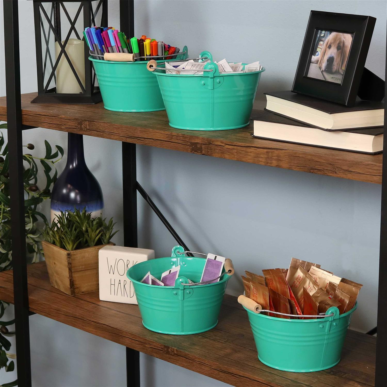 Sunnydaze Galvanized Steel Bucket with Handle – Set of 10 – Teal