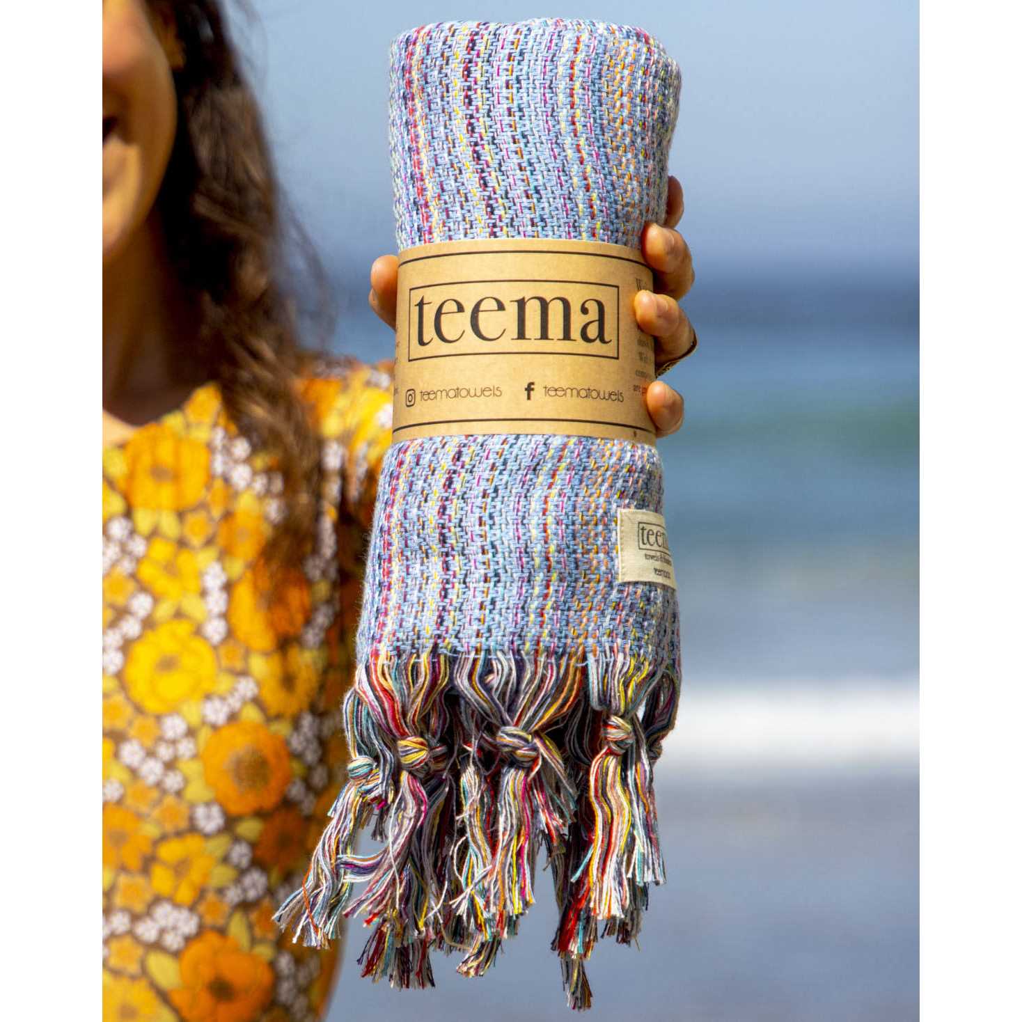 The Sky Labyrinth – By utilizing dozens of different colored threads in each design, the Labyrinths weave creates a hypnotizing, breathtaking display of interwoven colors. The Labyrinth Towel is woven on traditional jacquard looms by our seamstresses in Turkey. It is thicker and softer than towels made on automatic looms.