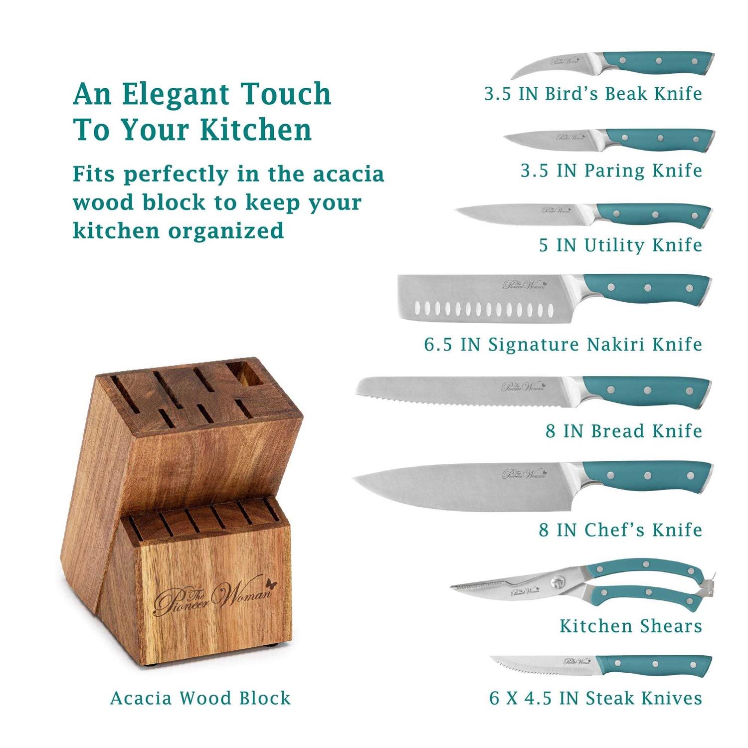 The Pioneer Woman Pioneer Signature 14-Piece Stainless Steel Knife Block Set Teal