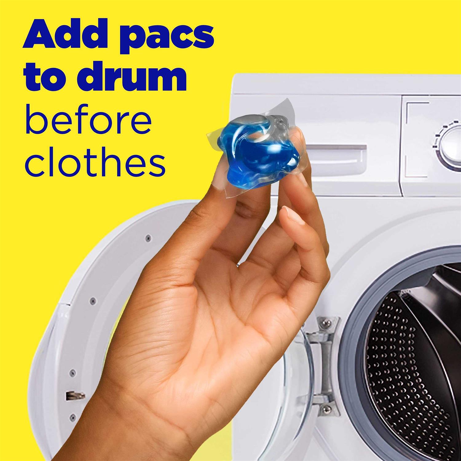 • Add Laundry Pacs to Drum, Add Clothes, Close Package After Use