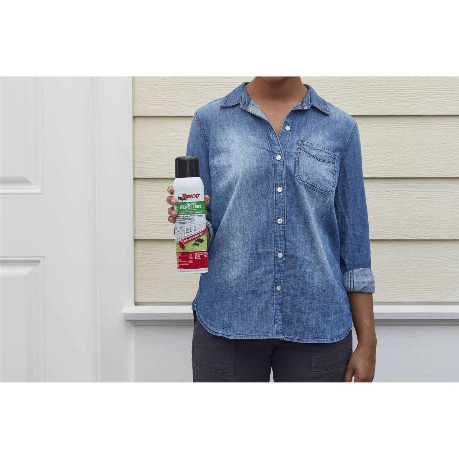 Tomcat Rodent Repellent Continuous Spray is formulated to prevent rodent entry, nesting, and foraging both inside and outside your home. This non-scented spray is long-lasting and rain-resistant and can be used around kids and pets. Its essential oil formula delivers a smell and taste that animals naturally hate, keeping them away from your home. For best results, spray at potential entry points around your home, including around doors, windows, cracks, crevices, pipes, and vents every 30 days. Comes in a ready-to-use 14 oz. aerosol can that can cover up to 275 sq. ft.