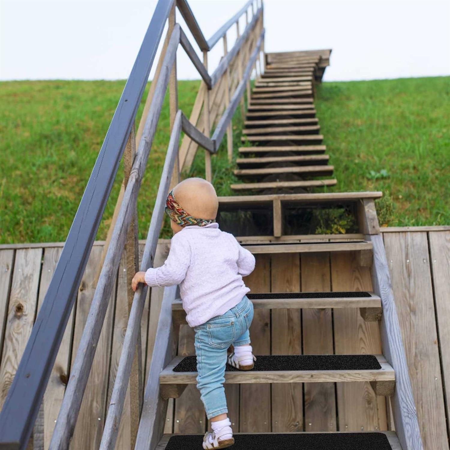 SAFETY GUARANTEE: The primary function of this product is to protect you and your family. To protect adults, children, elderly and pets who use stairs. Our products are try our best to avoid accidents. This product uses non-toxic and harmless material, will not cause harmful substances due to rain or high temperature. High quality adhesive can withstand mutiple weather conditions.It can be used lower to -40°C(104°F),higher to 80°C(176°F). There aren’t any cracking warping problem after raining and snowing.It will not be melted with high temperature as well.