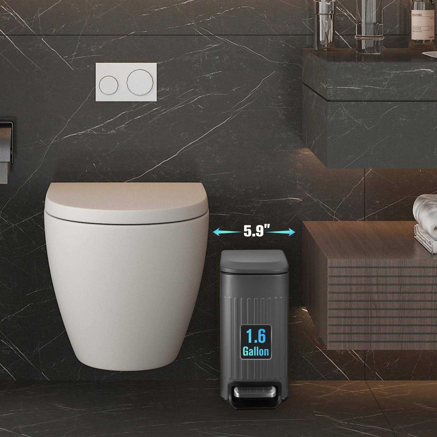TrashAid Small Trash Can for Bathroom with Lid Soft Close, 6 Liter / 1.6 Gallon Stainless Steel Garbage Can with Removable Inner Bucket, Step Pedal,