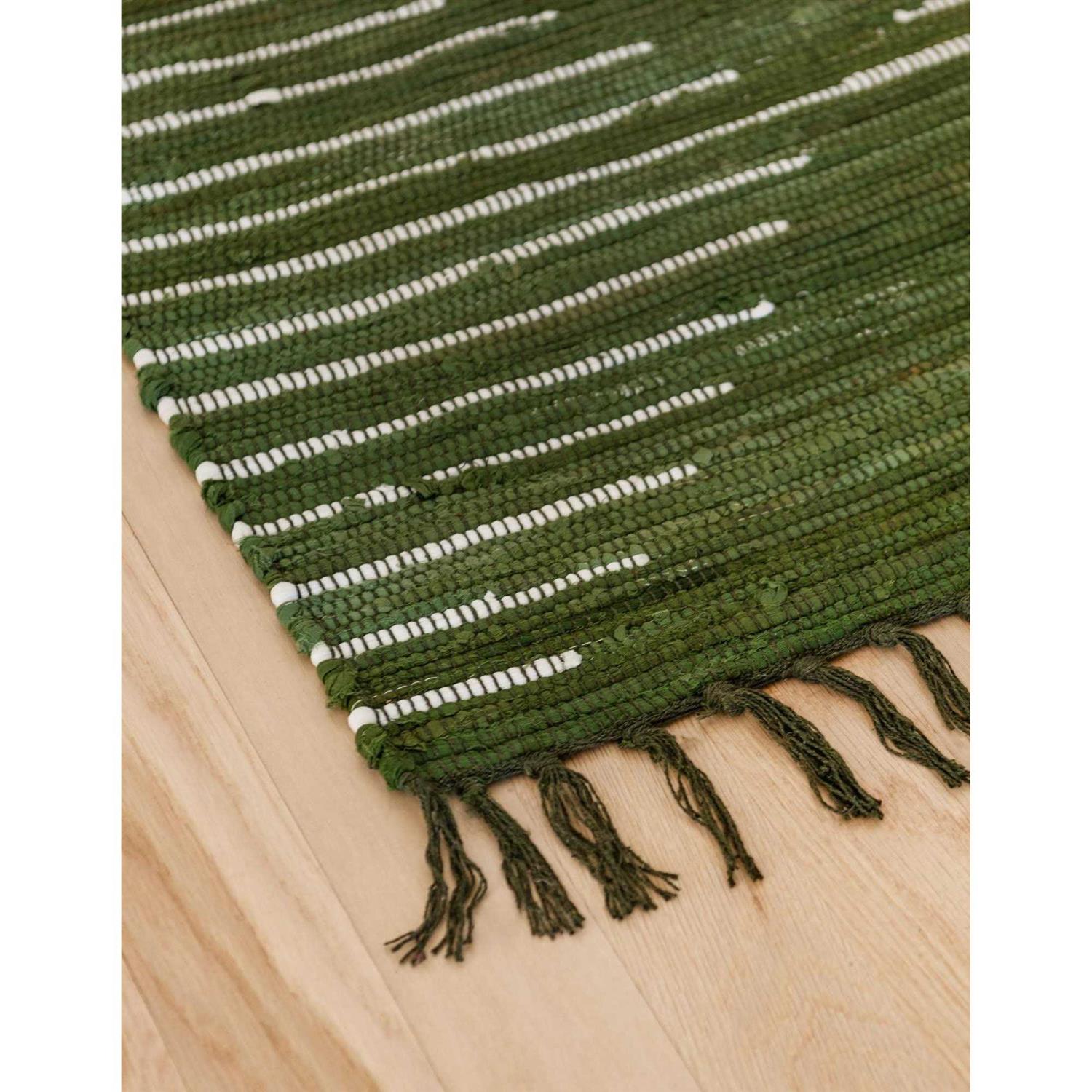 Unique Loom Chindi Cotton Handwoven 6 ft Runner Green Green Abstract Area Rug