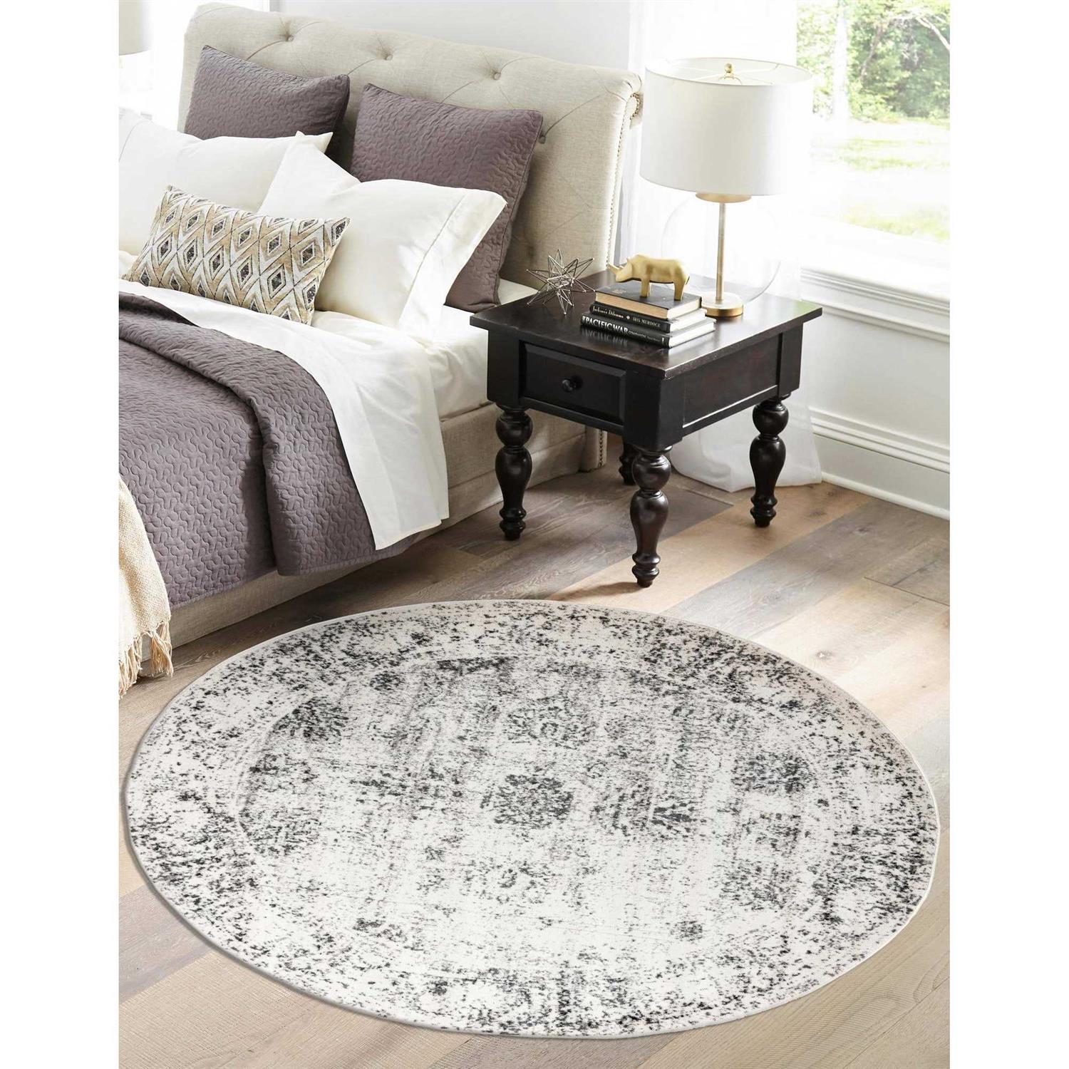 Unique Loom Gray Floral Casino Sofia Rug 4′ Round