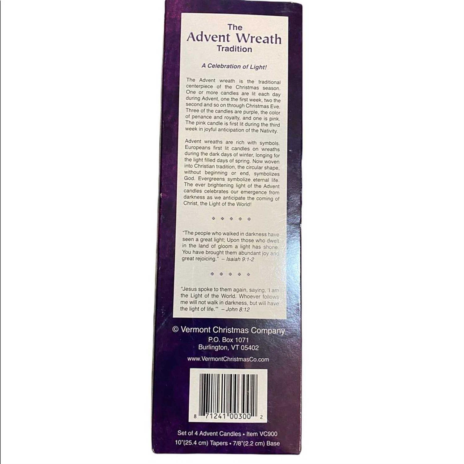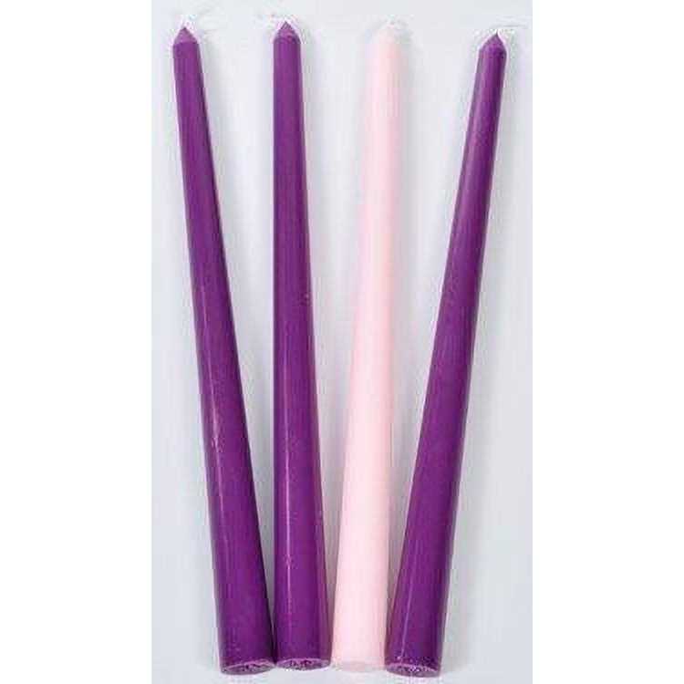 • Advent candle set includes 3 purple candles and 1 pink candle.