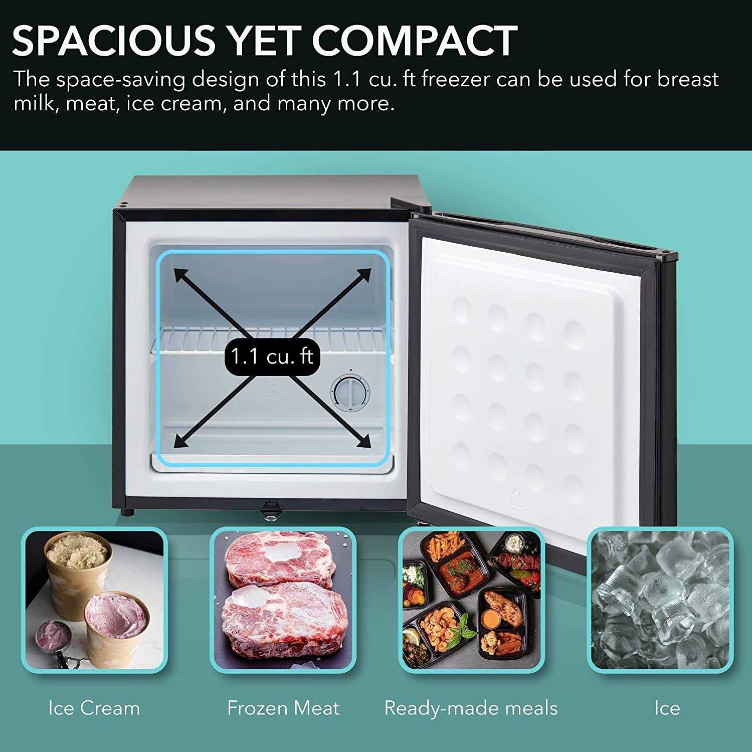 Ideal for any small space where cold storage is needed, the Whynter 1.1 cu. ft. the upright freezer can also be used in the kitchen, offices, garages or basements. This space-saving compact upright freezer is designed with a flush back, allowing it to fit cleanly against the wall or into corners. The Whynter 1.1 cu. ft. the upright freezer features a stainless steel reversible-swing door, adjustable thermostat, one removable shelf and a lock for securing the contents. As an Energy Star rated appliance, this upright freezer will help you keep your energy costs down while providing efficient freezing solutions.