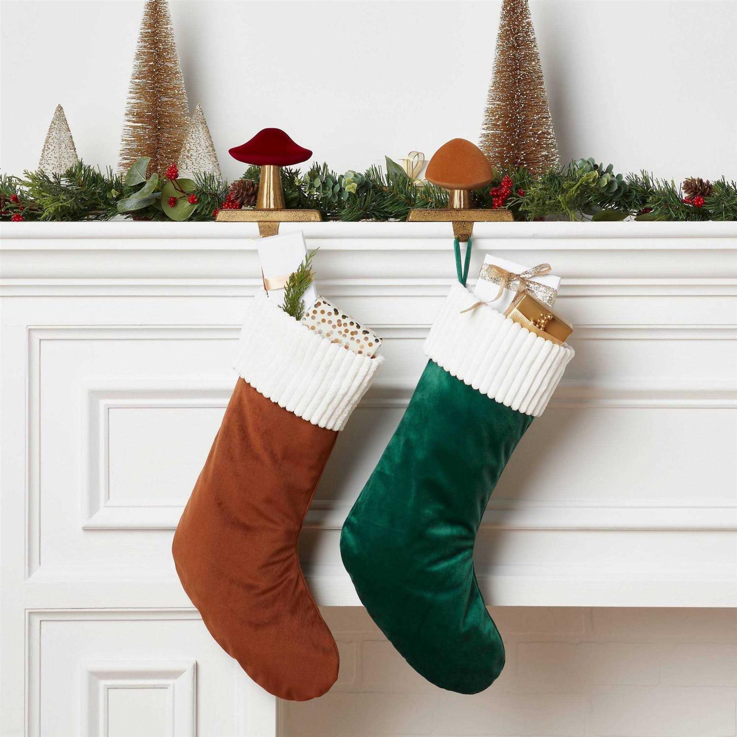 Add a touch of holiday magic to your mantel with this Reversible Christmas Holiday Stocking in Green/Light Green from Wondershop . This holiday stocking is sized for filling with small treats, trinkets or other stocking stuffers. Designed with a fleece-like ribbed cuff in white and boasting a velvety construction, it features a reversible design in solid green that reverses to a solid light green to coordinate with your decor style. Best of all, it features an attached hanging loop, making it easy to hang from above the mantel or from any hook to complete the festive look. Welcome to the Wondershop .
