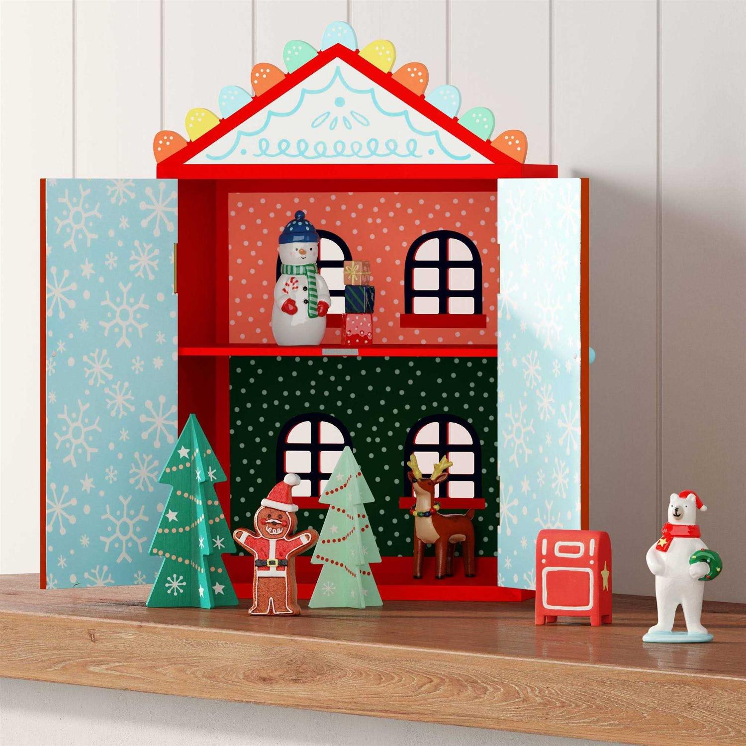 9pc Wood Gingerbread House Christmas Figurine Set – Wondershop Brown