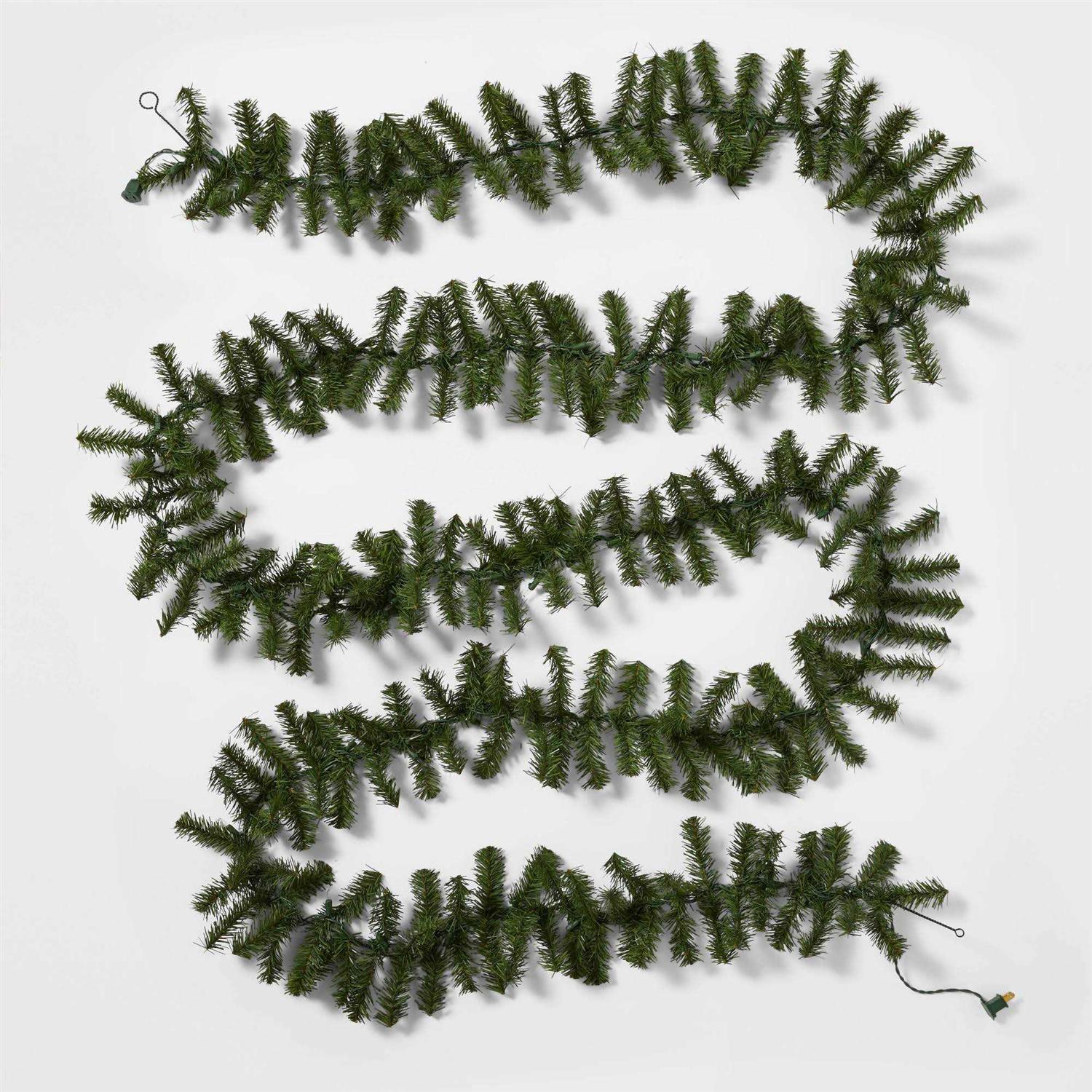 18′ Pre-Lit Artificial Pine Bough Christmas Garland Green with Clear Lights – Wondershop