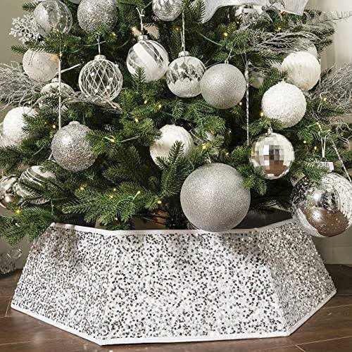 XmasExp Christmas Tree Collar Sequin Tree Skirt for Christmas Holiday Home Decor Xmas Tree Ring Stand Base Cover