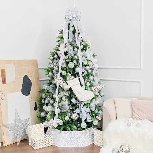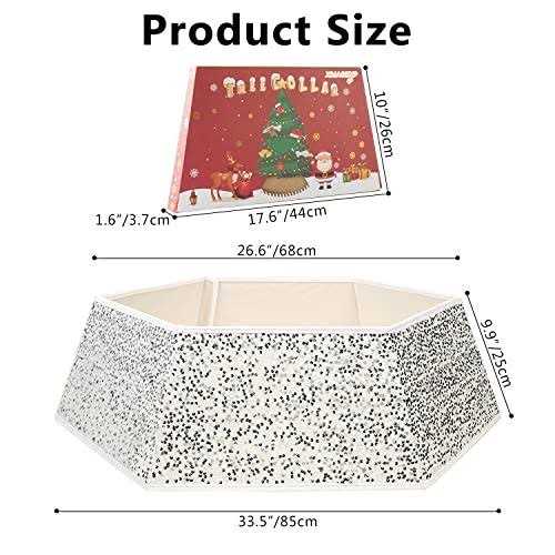 XmasExp Christmas Tree Collar 33.5 inch Sequin Tree Skirt for Christmas Holiday Home Decor Xmas Tree Ring Stand Base Cover Large Size 6 Piece White